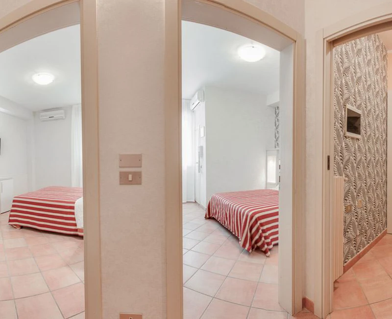 Family Orchidea | Family OrchideaGröße:25 m2 Personen:Bis zu 5 Anlage:2 Schlafzimmer und 2 Badezimmer Die Orchidea Familienzimmer umfassen 2 Doppelzimmer und 2 Bäder, die perfekte Lösung für all jene, die im Urlaub viel Platz, Privatsphäre und Komfort lieben. Auf Wunsch kann auch ein Campingbett eingestellt werden. |