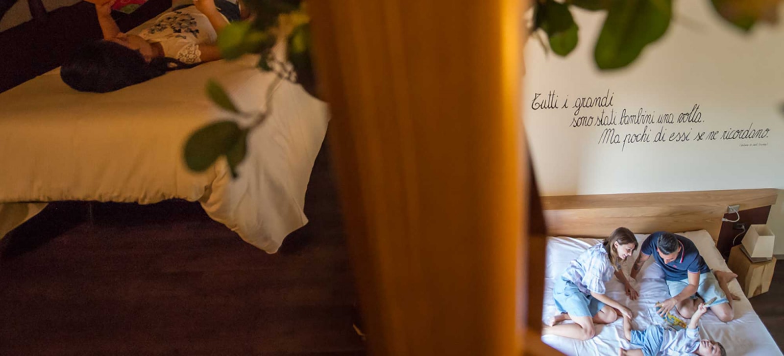1Three play areasThe hotel features beautiful indoor play areas complete with soft cushions, giant Legos, a ball pit, drawing tables, and super colourful walls. | 2Rooms and suitesBear's Cave and Tree House themed rooms, where children will have fantastic dreams, as well as a Spa Suite with a wellness area and hot tub. | 3LocationSituated in a unique natural environment, the hotel serves as an excellent starting point for nature excursions, as well as for trips to the Selvino town centre and the ski resorts. |