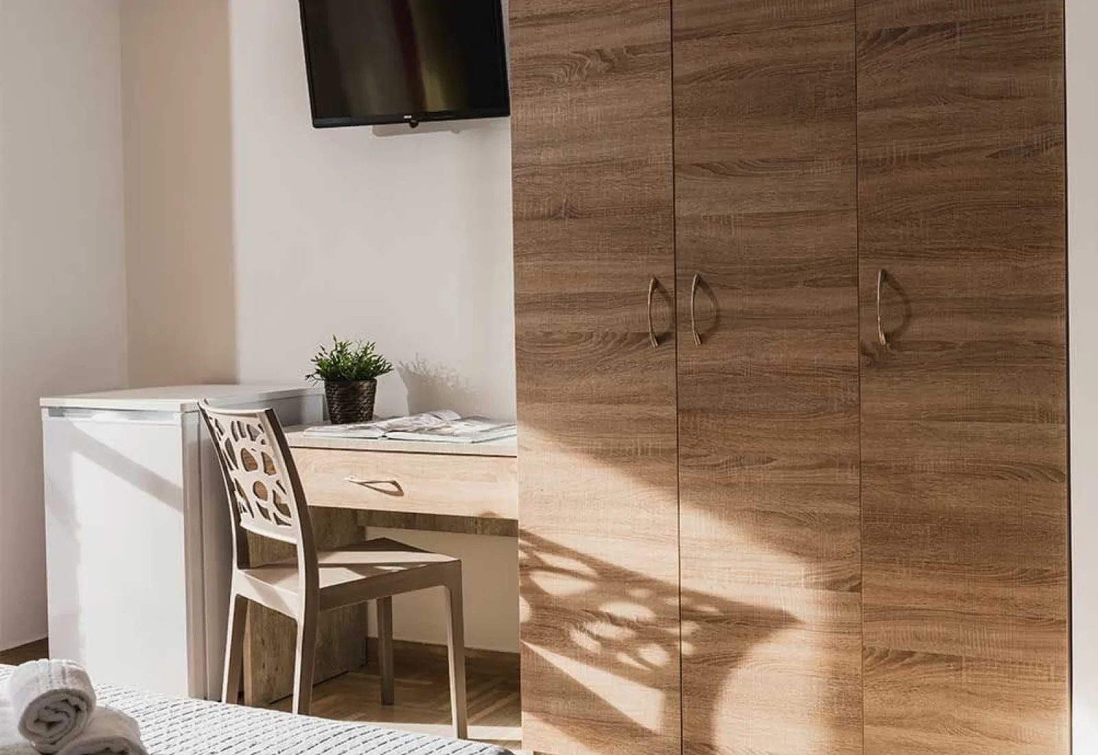 Triple/Quadruple RoomsSize:65 mq People:Up to 5 Spacious rooms with a double bed and a single bed, while a second single bed can be added for families of 4. The Triple and Quadruple Rooms have a bathroom and a balcony, which has a sea view for some options. | Triple/Quadruple Rooms |
