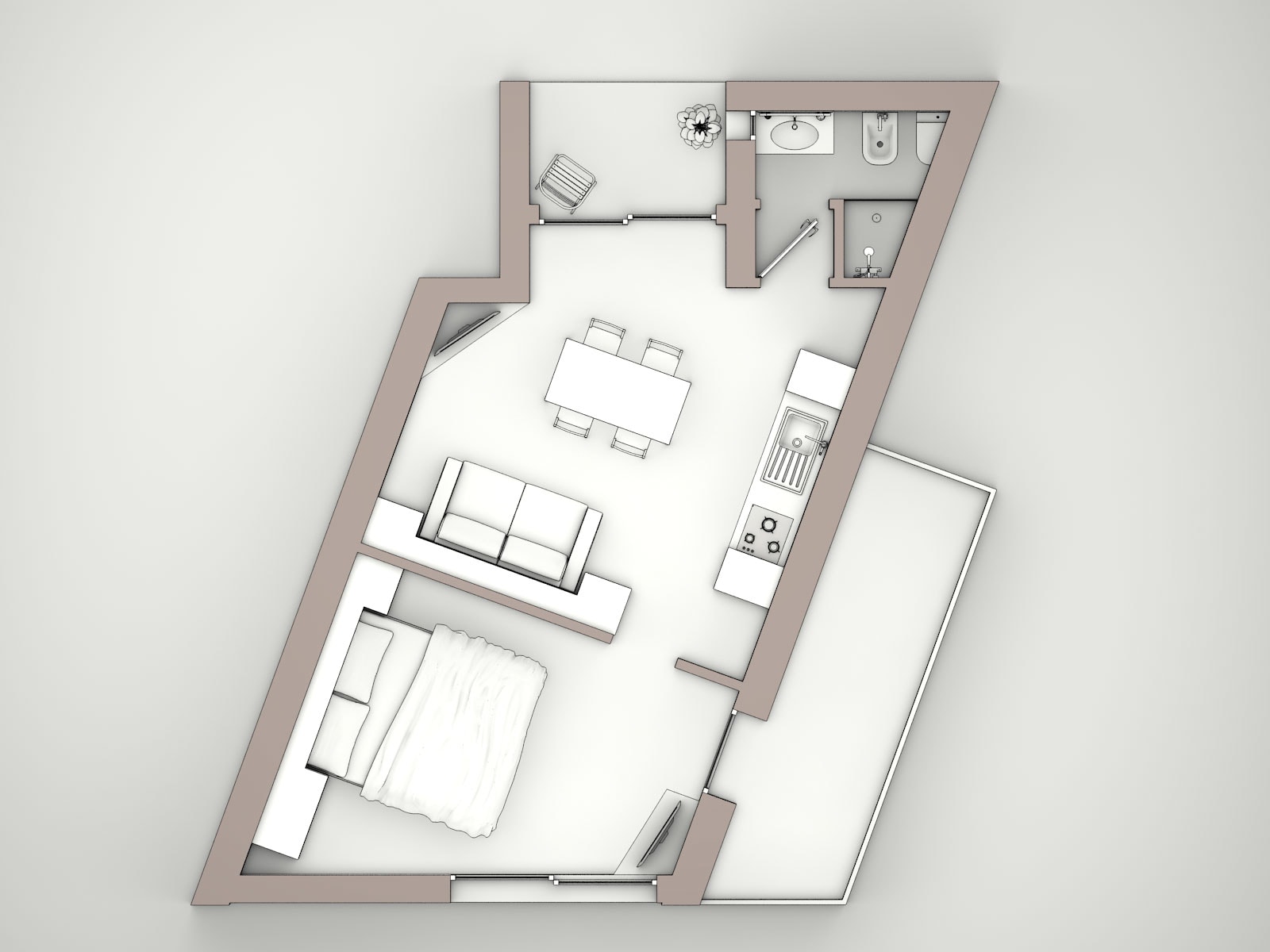Studio Apartment | Studio ApartmentThis one-room 22 m2 unit with independent air conditioning includes a bathroom and balcony. The unit consists of a double Murphy bed for additional space during the day, with the possibility of adding an extra single bed, as well as a fully-equipped kitchen, a bathroom with a hairdryer, and a shower complete with a jet massage column. |