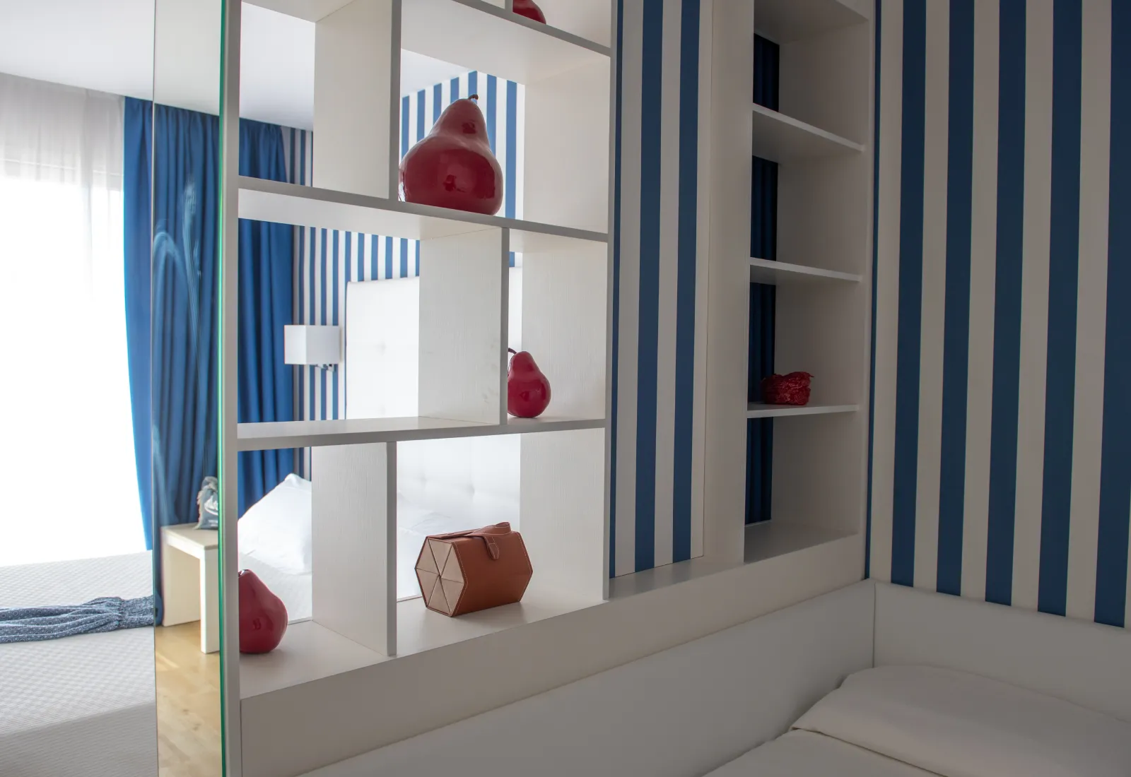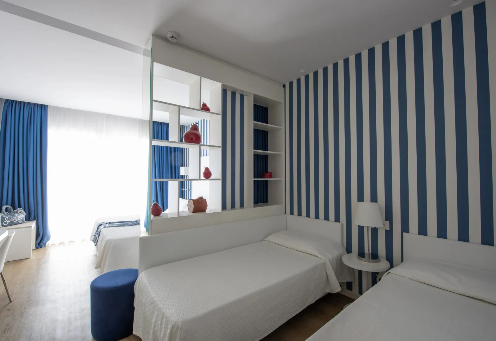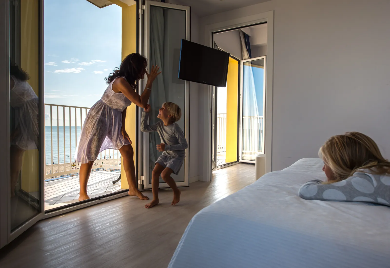 Air conditioningFree Wi-FiRoom serviceSoundproofed roomsCourtesy setSafeWake-up callsBed rails, cradels, bottle warmers, baby changing tablesSeafront Ocean Rooms | Seafront Ocean RoomsSize:20 m2 Facility:two adjoining rooms View:sea Large family rooms with splendid views of the sea. Boasting a modern and elegant design, these units consist of two separate rooms (a double bedroom and children’s bedroom) to ensure maximum privacy for the entire family. Even equipped with 3 balconies. |