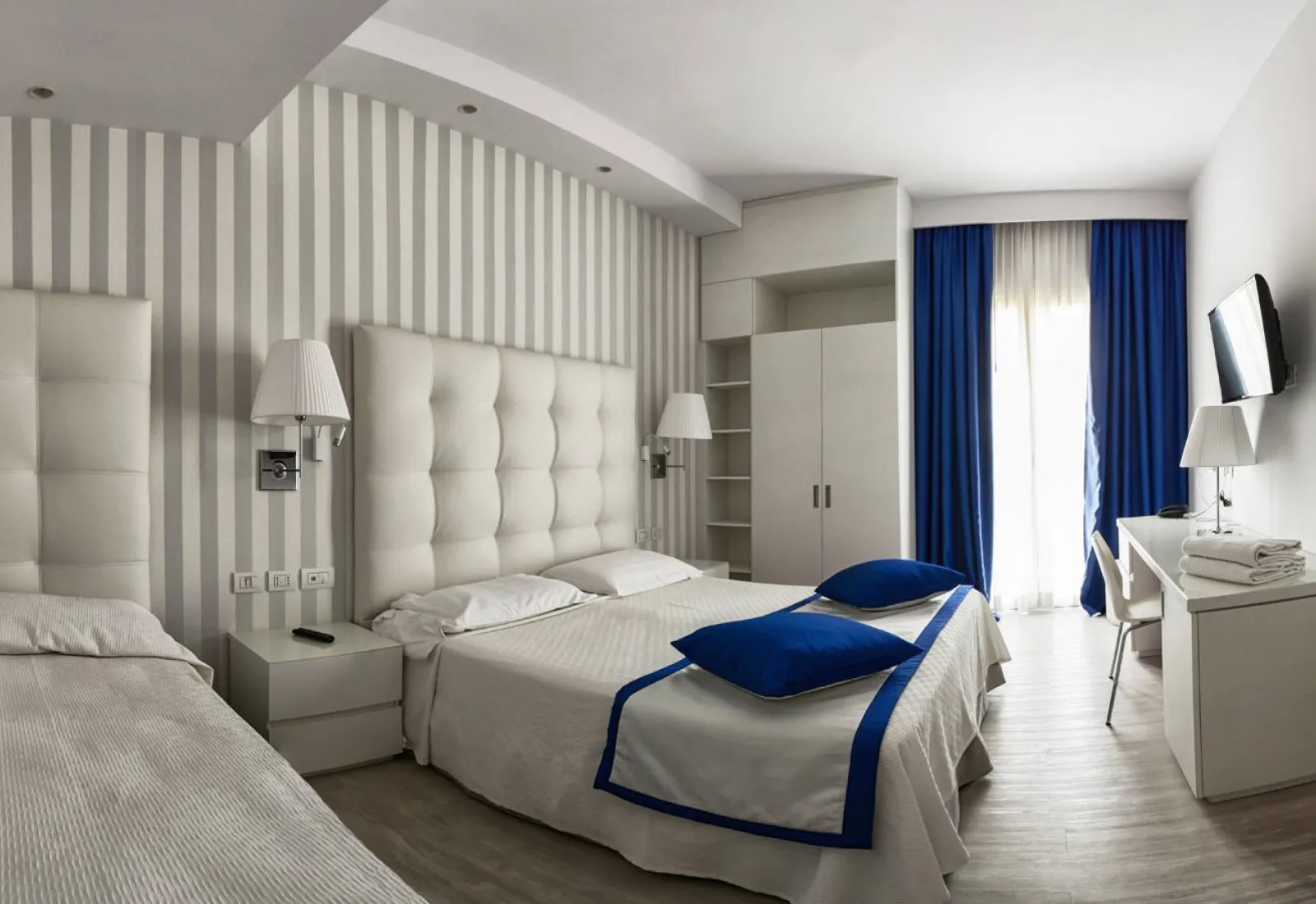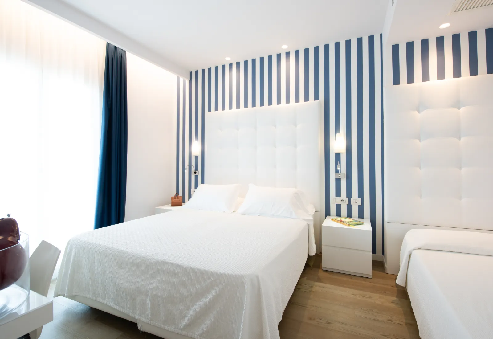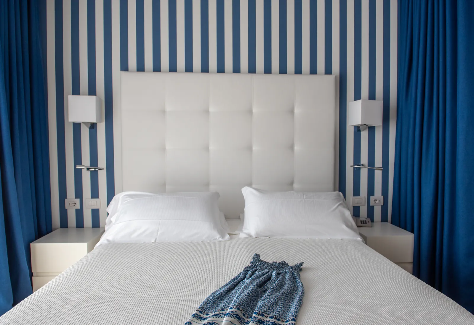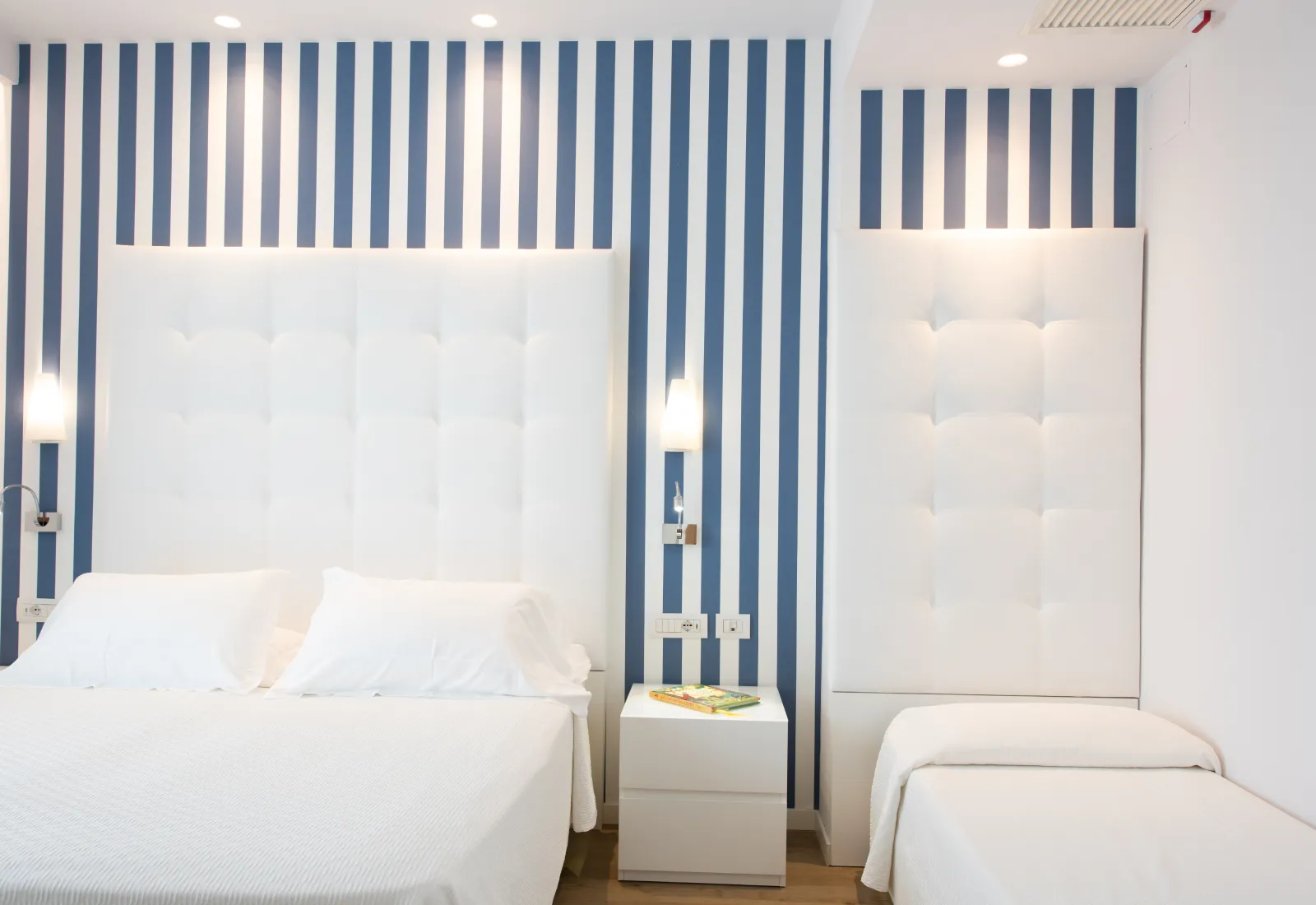 Sea RoomsSize:18 mq People:4 View:Sea Elegantly furnished, completely soundproofed, and finished with maximum attention to detail, these rooms include LCD TVs with Mediaset Premium service, direct dial telephones, independent air conditioning/heating, safes, minibars, and balconies overlooking the sea. | Sea Rooms |