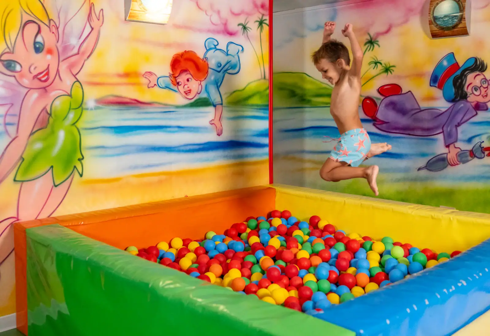 We want children to feel like they’ve entered a fairytale land, where their imaginations can run wild! That’s why here at the Hotel Gardenia, we’ve created a real… Neverland! A fantastic 100 m2 space complete with lots of activities for all our youngest guests, from 2 to 14 years of age. With slides, a ball pit, small inflatables, and building toys, the fun is guaranteed, and the kids are supervised by our well-trained staff, all of whom report directly to our mascot, Denia: a cute and friendly little flower. Our Neverland area is open all throughout the day. Our entertainment staff have a lot of experience looking after children and young people, engaging them in group activities and games, board games, workshops, and evening shows. And the fun continues down on the beach in the afternoons. |