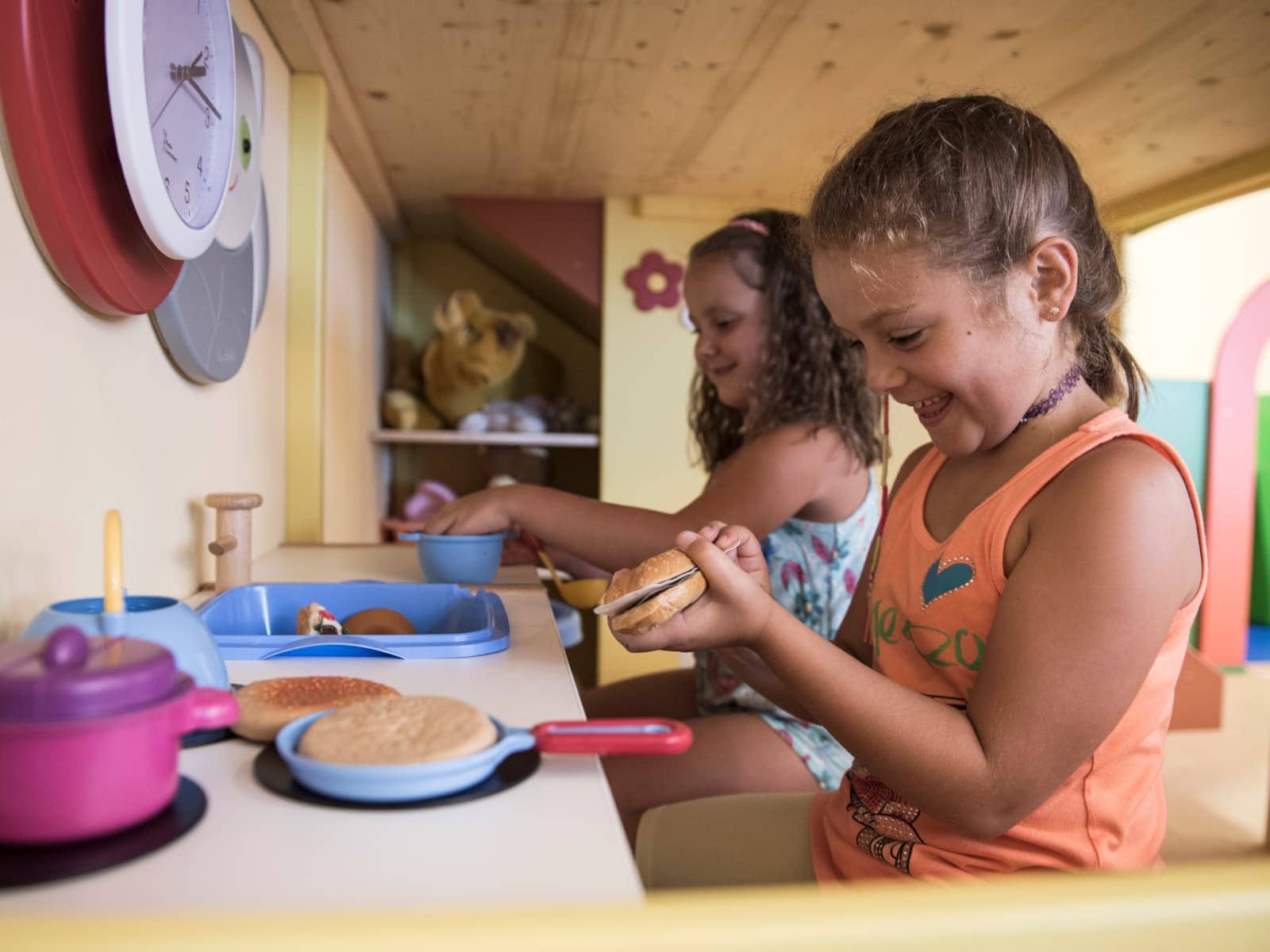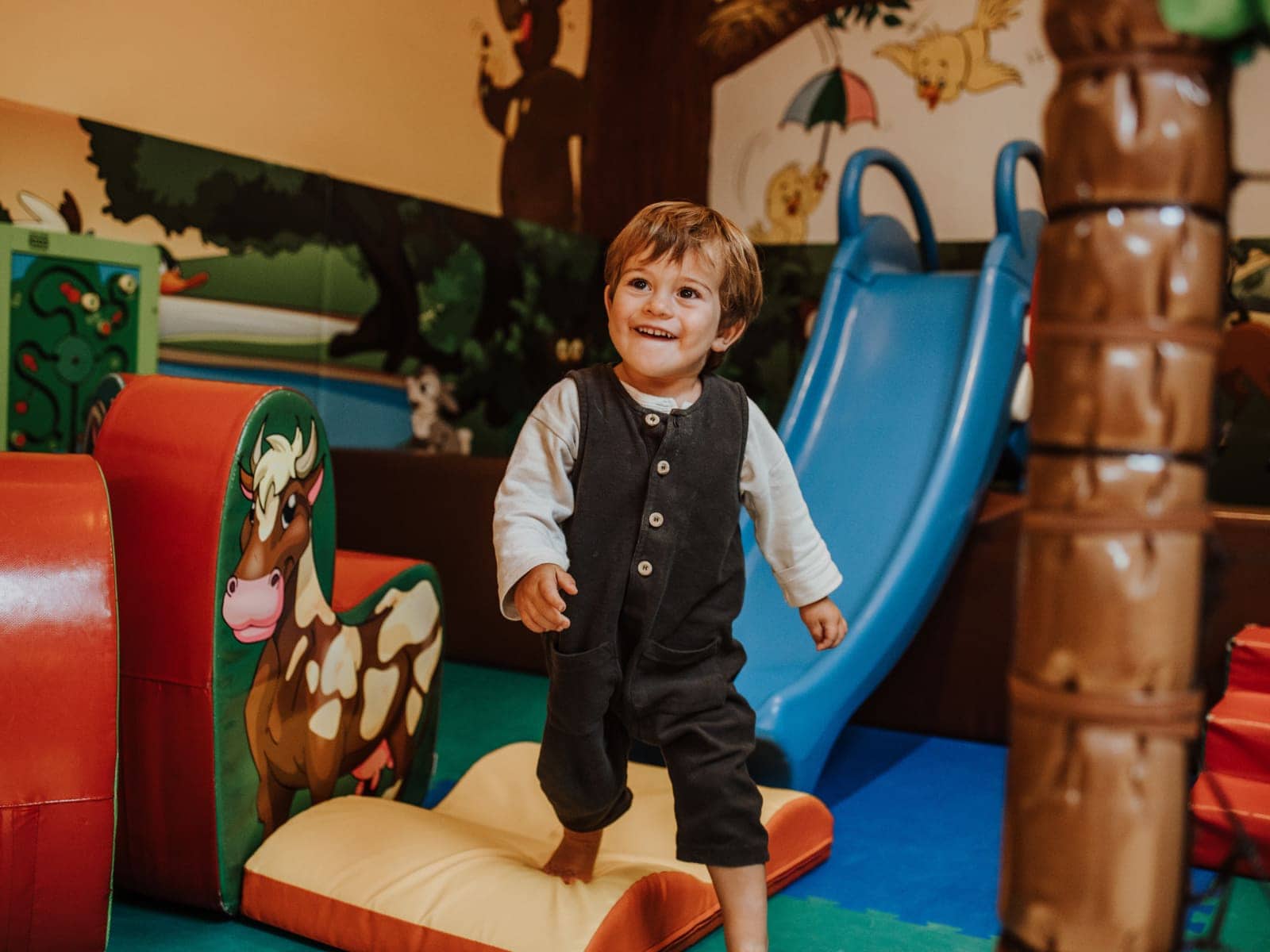 Our friendly Babysitters look after our guests’ little ones up to 30 months of age. For children over 3 years of age, the entertainment staff at the Happy Club organise fun activities and workshops at the hotel, in the garden (where there’s even a mini zoo), and at our educational farm. Children 7 to 12 years of age are engaged in guided outings, tournaments with multimedia games, and relaxation time at the Chill Out Lounge, where they can listen to music and chat with their new friends. And there’s also certainly plenty of room in our 500 m2 indoor play area!