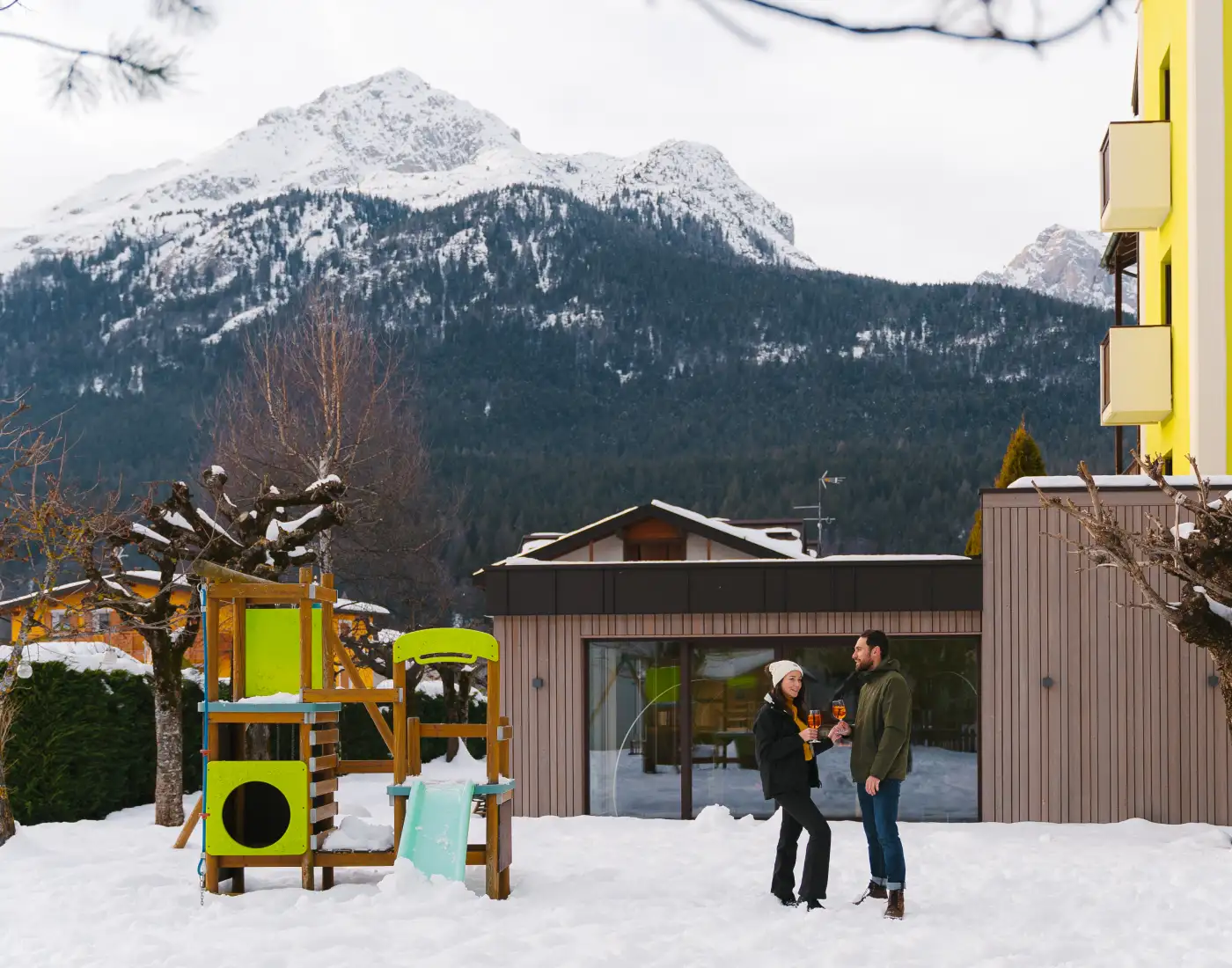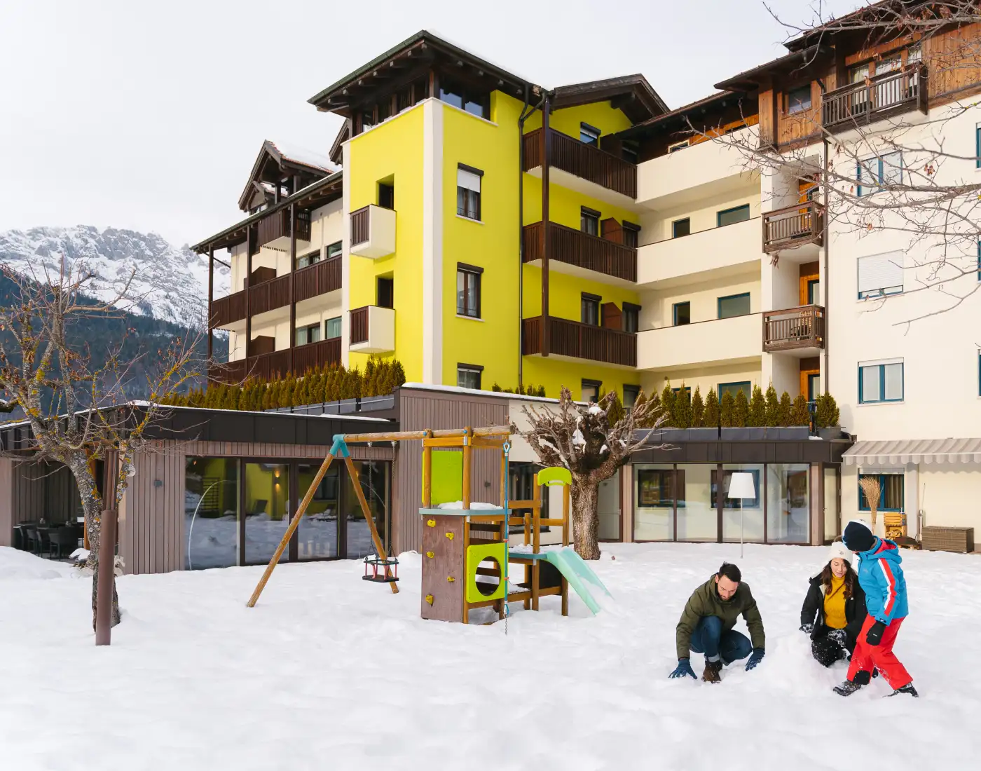 Here, guests will find an extremely friendly entertainment staff ready to look after their children over 1 year of age. Every day, we organise games, workshops and activities in our indoor rooms, divided by age groups. During the warmer months, our guests’ children can have lots of fun jumping, somersaulting, and playing games in the garden, with playground features like the witches’ castle, the cottage under the tree, and the sandbox. In the summertime, we organise fun educational excursions for families with children, in order to give them the opportunity to learn more about our local environment and wildlife. In the wintertime, there are two ski camps located directly in the village, which can be reached via the ski bus that stops right outside, or else by booking the All Day course, with the ski instructors coming directly to the hotel to pick up the children. |
