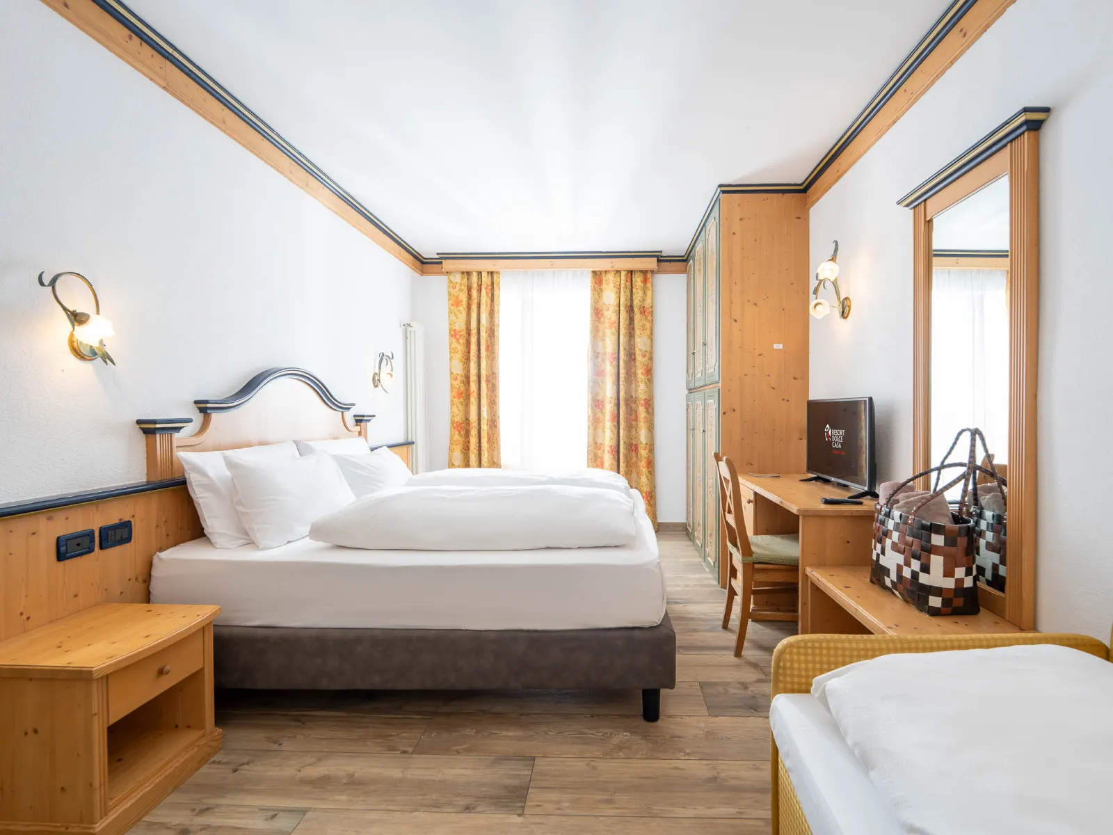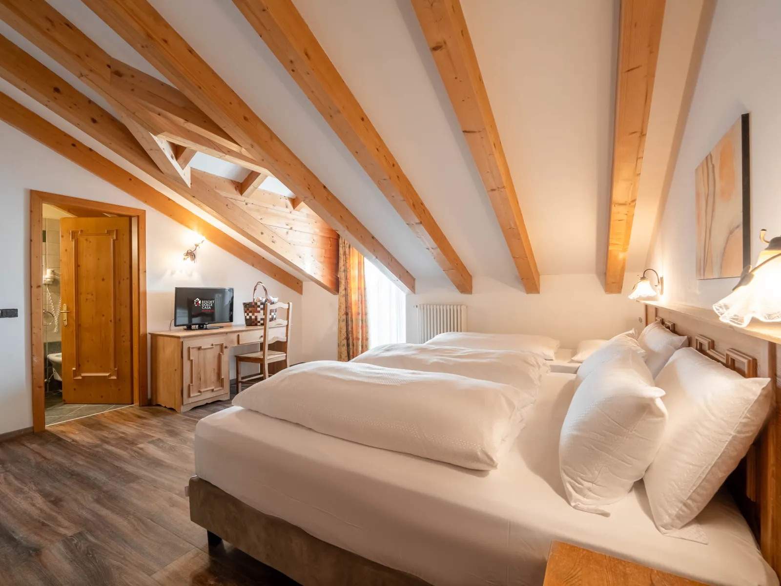Junior SuitesSize:28-30 m2 Most of these rooms have balconies with panoramic views of Moena and the Fassa Valley Dolomites. They can accommodate up to 4 people, with the possibility of adding a camping cot for a child. | Junior Suites |