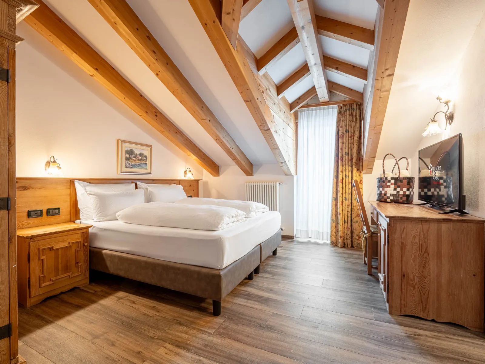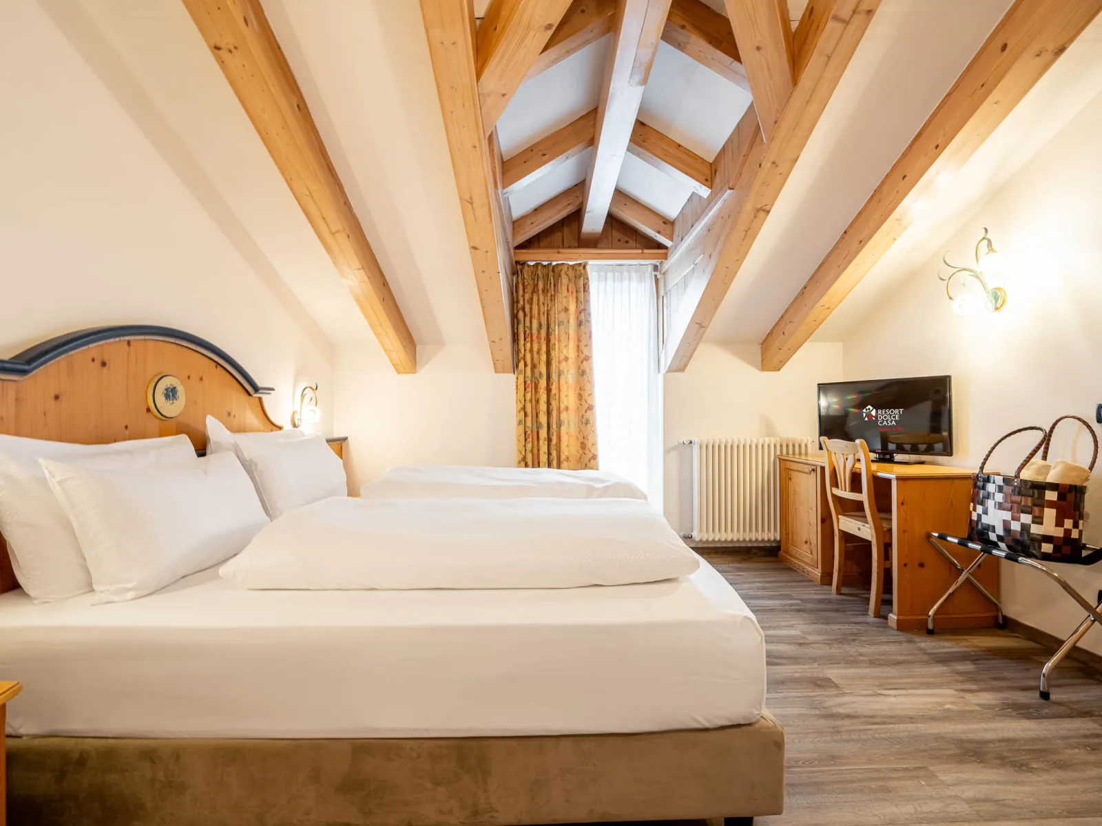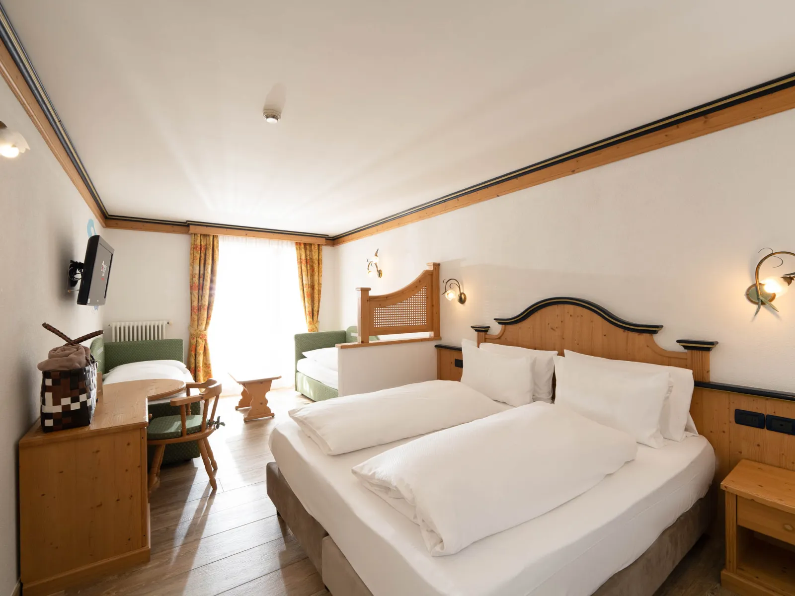 Free Wi-FiRoom serviceCourtesy setSafeWake-up callsSanitising of roomsBaby WC reducer and stoolsBed rails, cradels, bottle warmers, baby changing tablesClassic Studio rooms | Classic Studio roomsSize:20 m2 Double attic rooms furnished in typical Tyrolean style, with the possibility of adding a camping cot. Almost all of these rooms come with lovely panoramic balconies. |