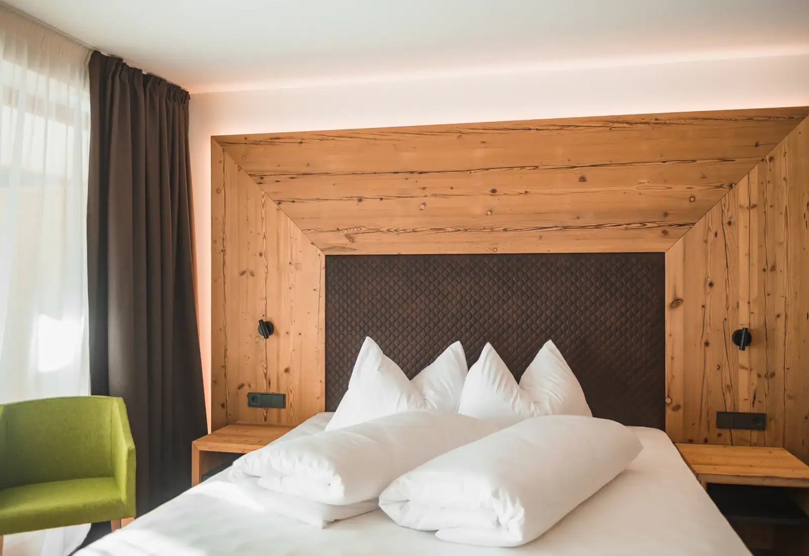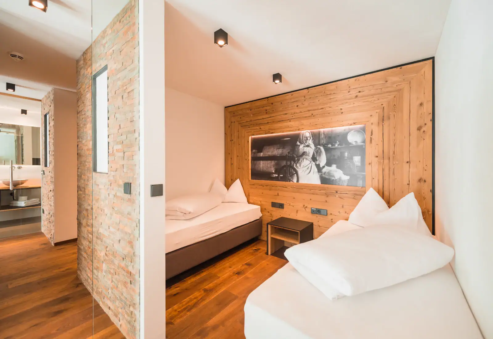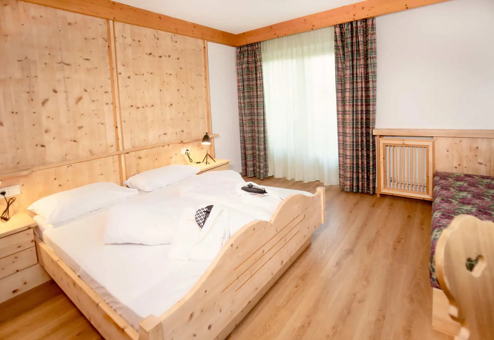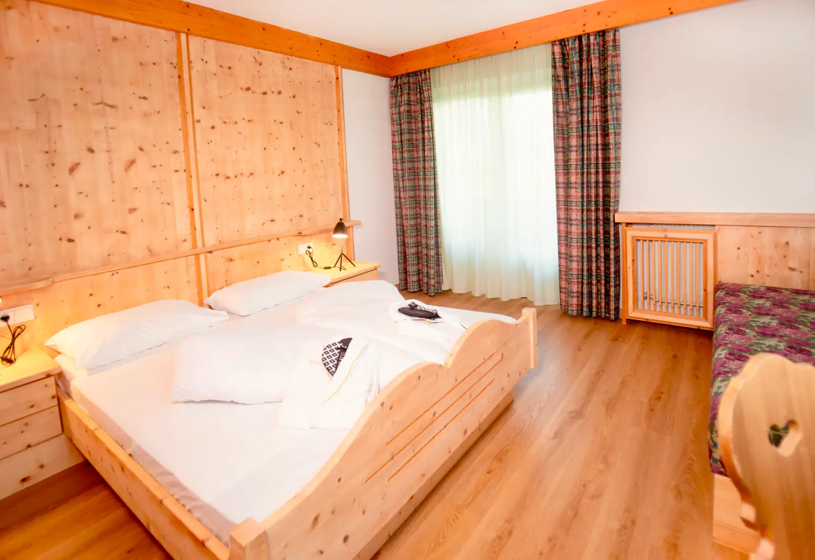Moidl Boutique Room | Moidl Boutique RoomDimensione:24 mq Persone:2/ 4 Per dormire come un vero “Moidl” (antico soprannome altoatesino di Maria)! La camera è arredata in tipico stile tirolese, con grande cura dei dettagli e begli arredi in legno chiaro. Confortevole, moderna e luminosa, con un tocco rustico. Ideale per famiglie con un bambino. Dispone di letto matrimoniale, divano letto, bagno con doccia e balcone |