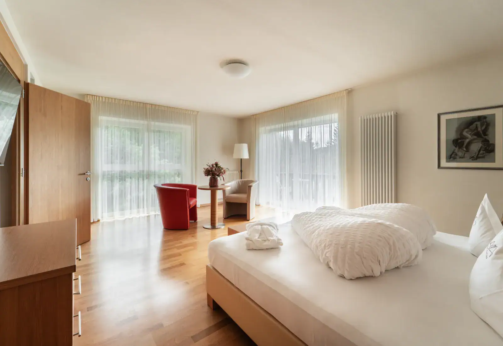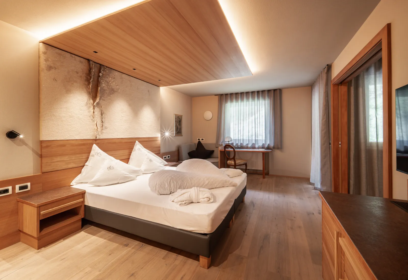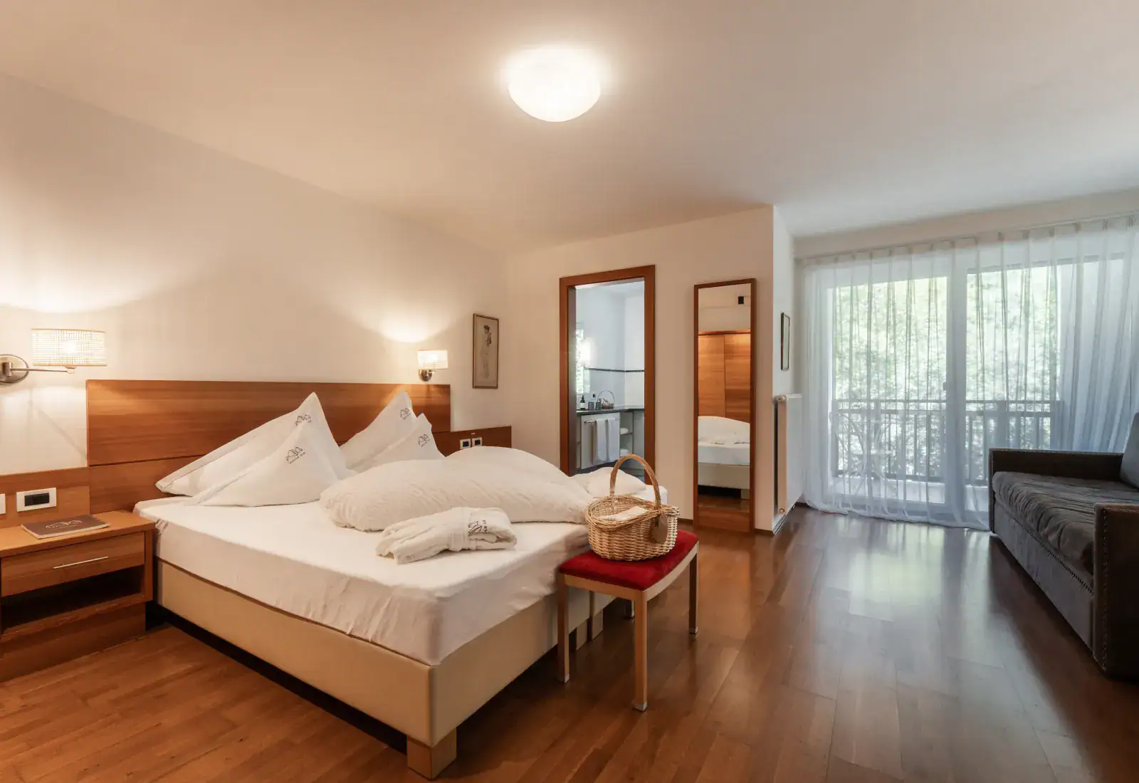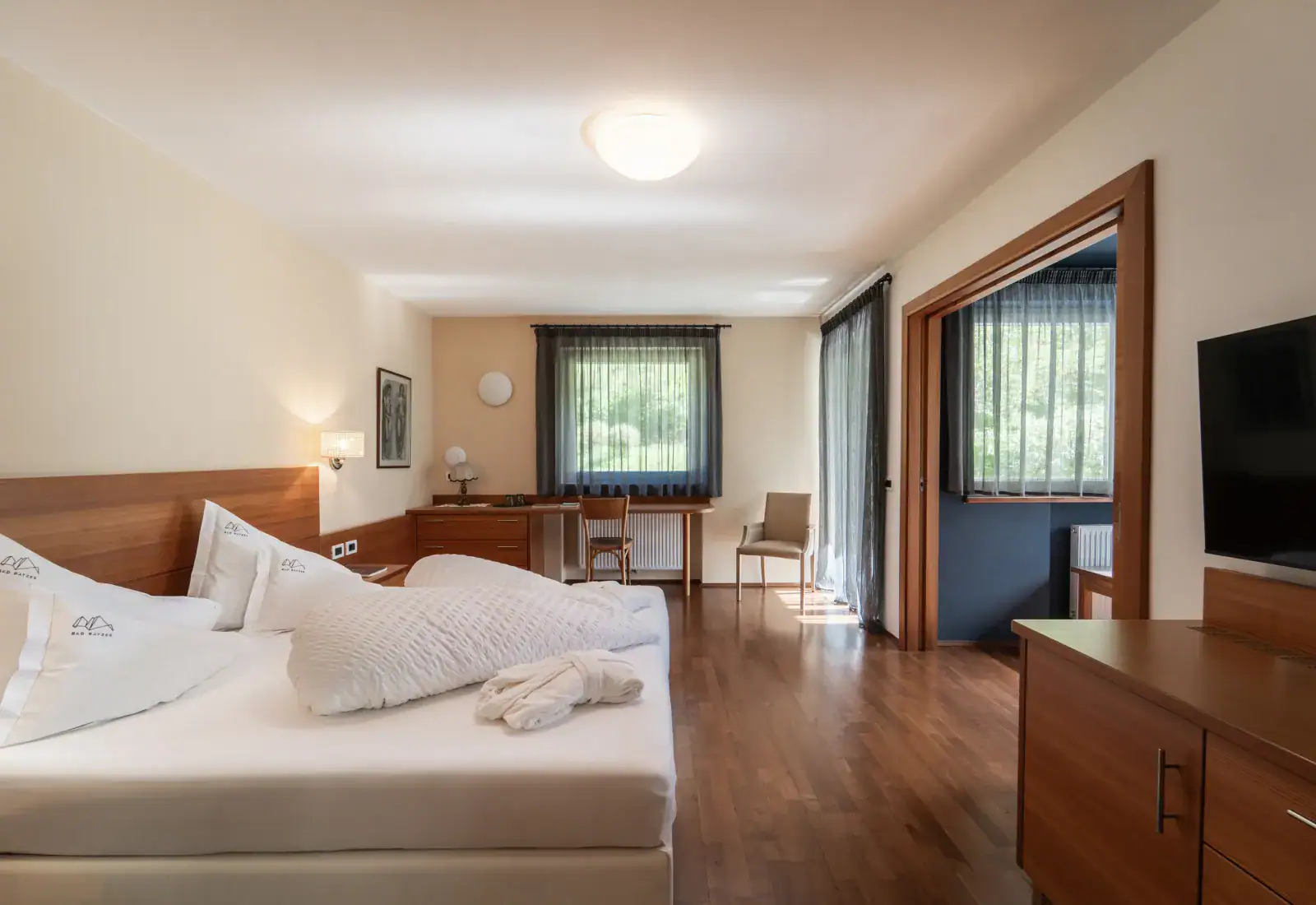 Bad Ratzes SuperiorDimensione:42 mq Capienza:4 persone Ambienti:2 stanze Camera doppia collegata a una camera a 2 letti. Possibilità di 3o letto o culla. Balcone, telefono, TV, cassetta di sicurezza, minibar. Bagno con doccia e toilette separata. Nel bagno spazio per fasciatoio e accessori. | Bad Ratzes Superior |