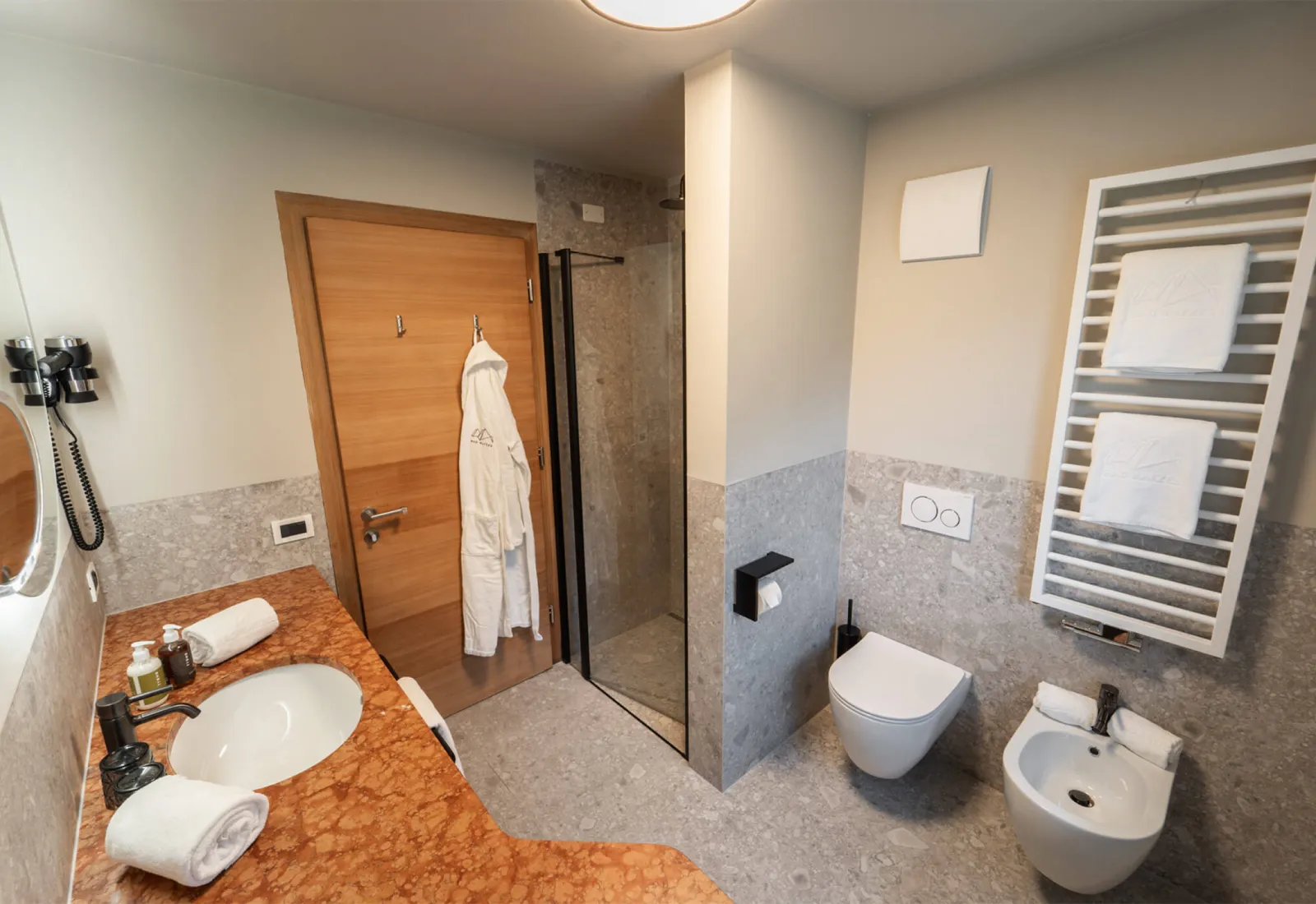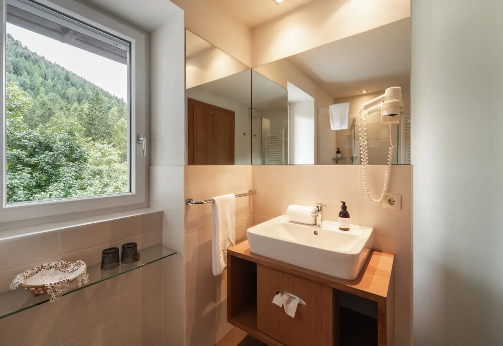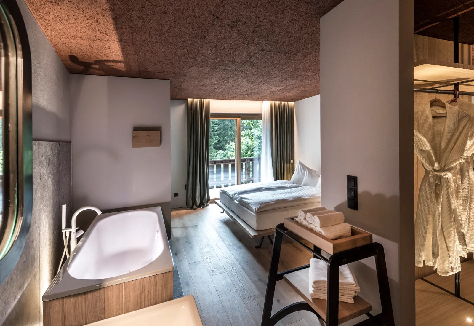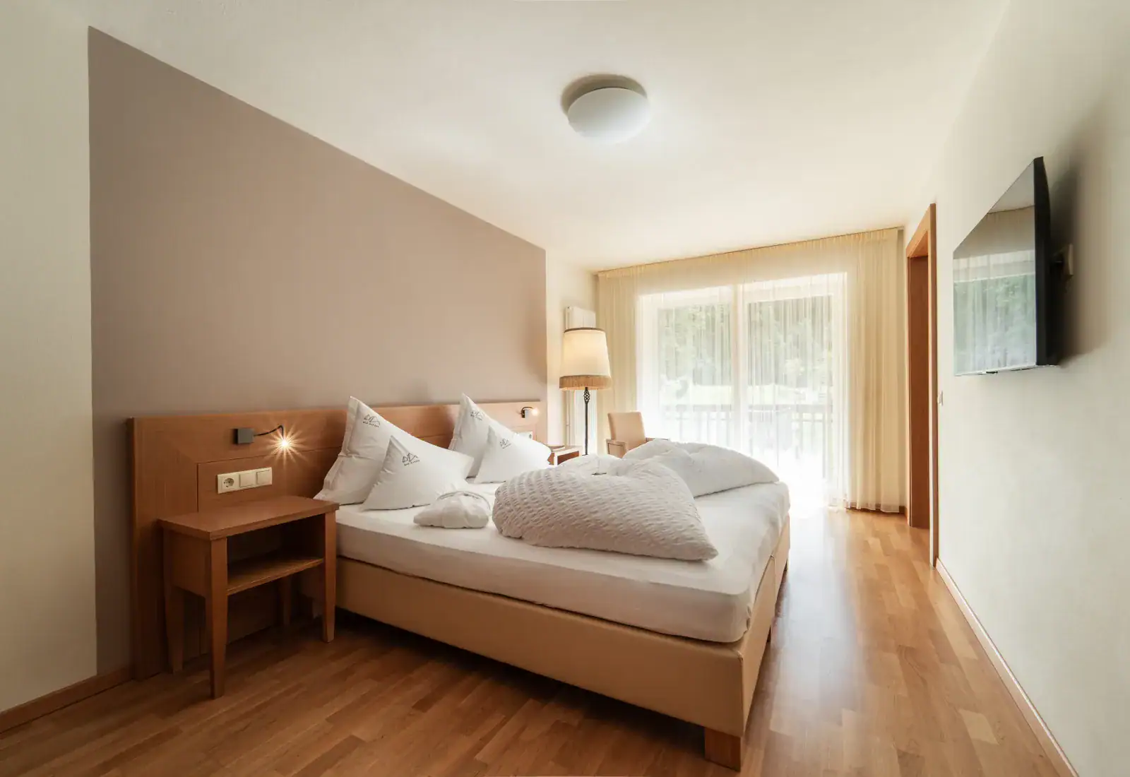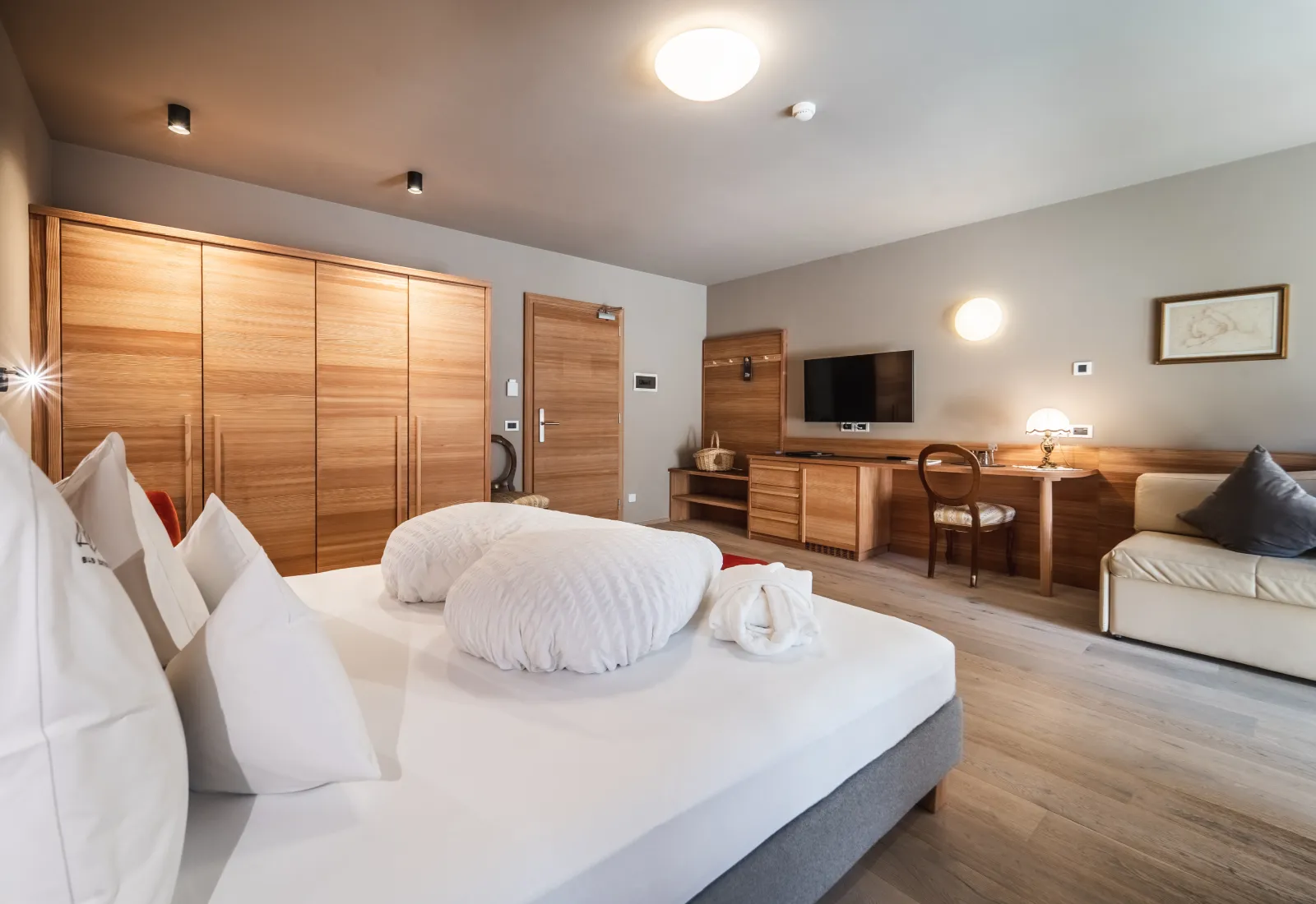 Bad Ratzes SuperiorDimensione:42 mq Capienza:4 persone Ambienti:2 stanze Camera doppia collegata a una camera a 2 letti. Possibilità di 3o letto o culla. Balcone, telefono, TV, cassetta di sicurezza, minibar. Bagno con doccia e toilette separata. Nel bagno spazio per fasciatoio e accessori. | Bad Ratzes Superior |