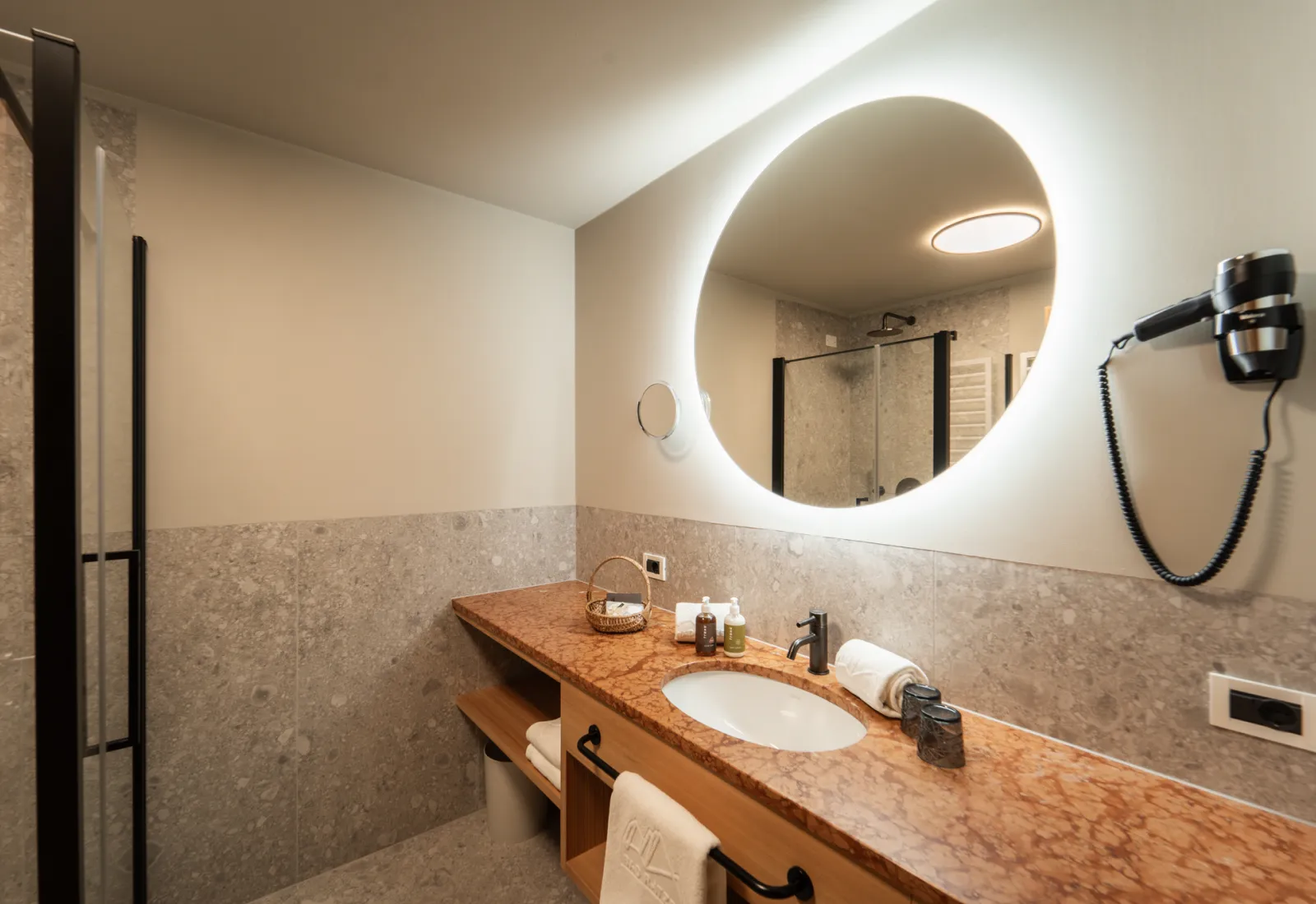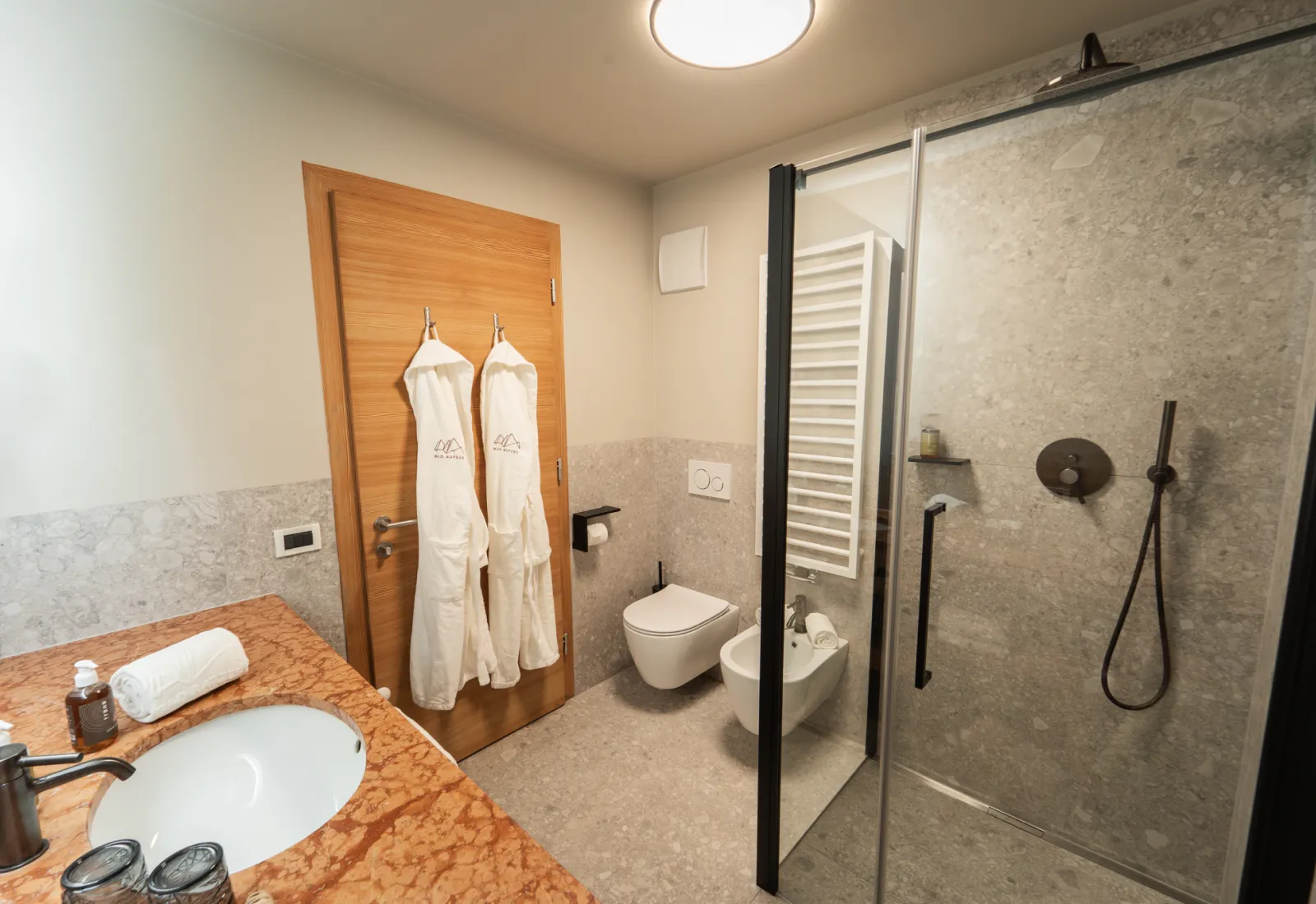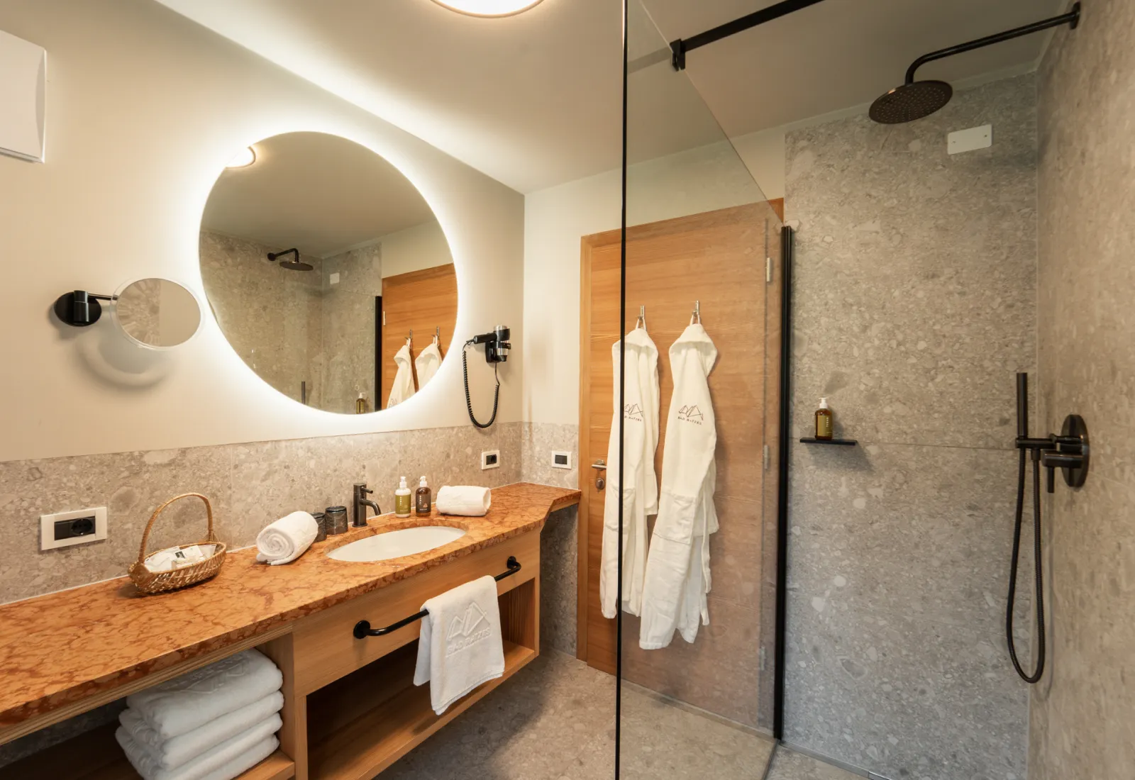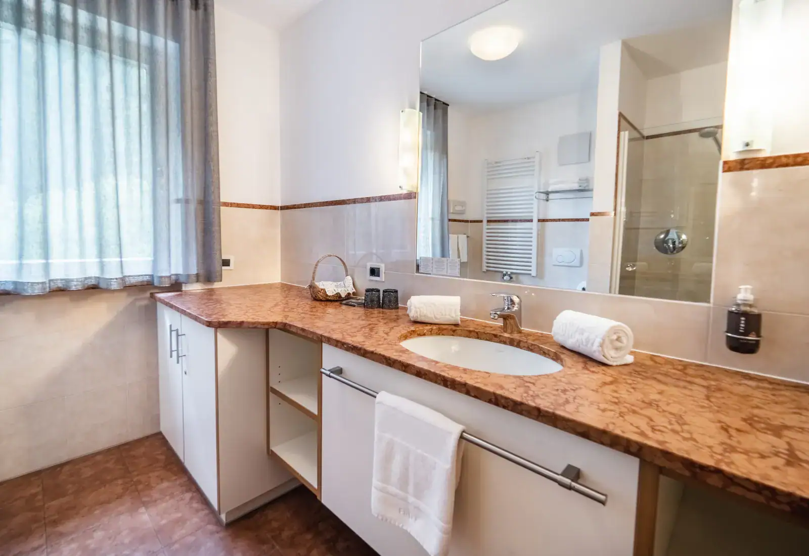Bad Ratzes SuperiorDimensione:42 mq Capienza:4 persone Ambienti:2 stanze Camera doppia collegata a una camera a 2 letti. Possibilità di 3o letto o culla. Balcone, telefono, TV, cassetta di sicurezza, minibar. Bagno con doccia e toilette separata. Nel bagno spazio per fasciatoio e accessori. | Bad Ratzes Superior |