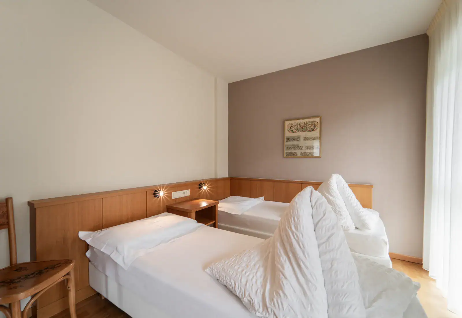 Goiwiese Superior | Goiwiese SuperiorDimensione:24 mq Capienza:2 persone Ambienti:1 stanza Camera doppia con balcone, bagno con doccia e WC, telefono, TV, cassetta di sicurezza, minibar. Le camere del tipo Goi-Wiese possono essere con o senza bidet. |
