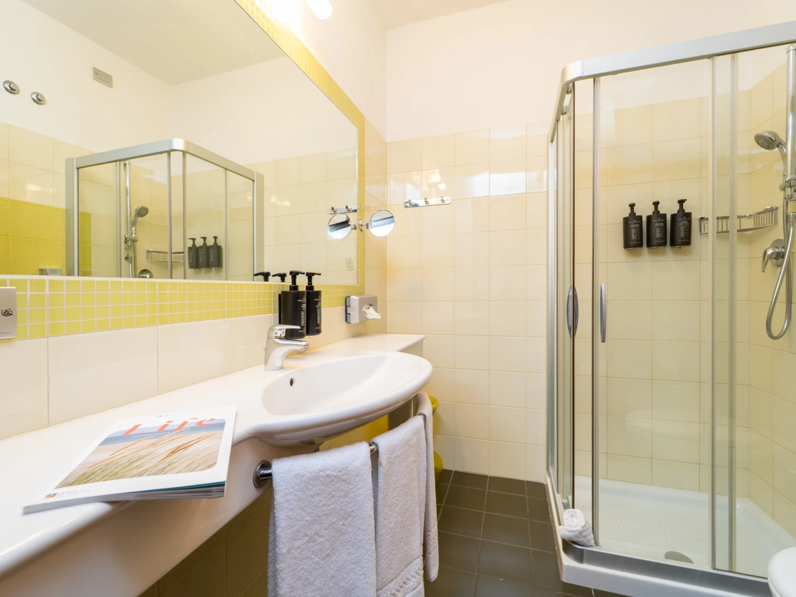 Per te ci sono ben due piscine: una esterna di 25 mt, anche con corsia dedicata al nuoto, e una bellissima vasca interna al 6° piano, accanto alla Sky Spa, per godere di un esclusivo relax con vista panoramica. Noi ci prendiamo cura dei tuoi bambini e tu puoi ritagliarti istanti di benessere, con un percorso tra sauna, bagno turco, doccia cromatica, regalandoti un massaggio o un trattamento, prima di fluttuare tra le tiepide acque della piscina.