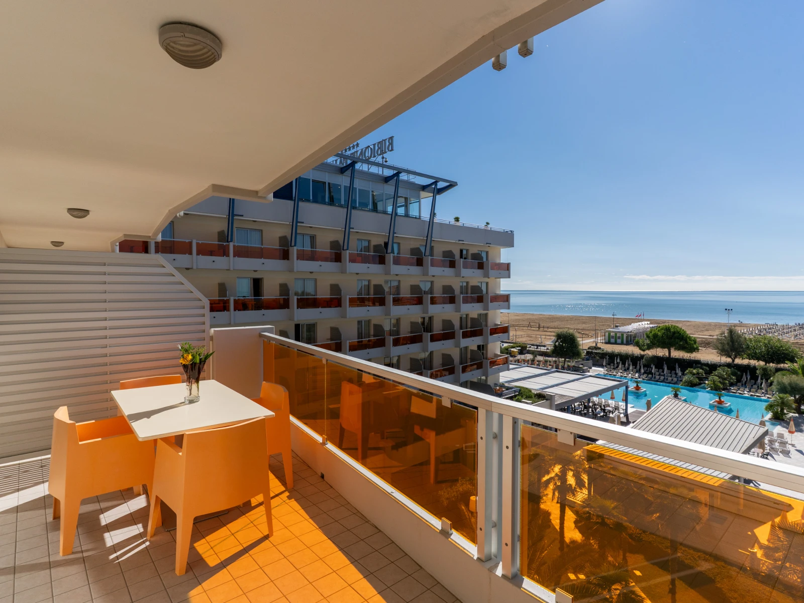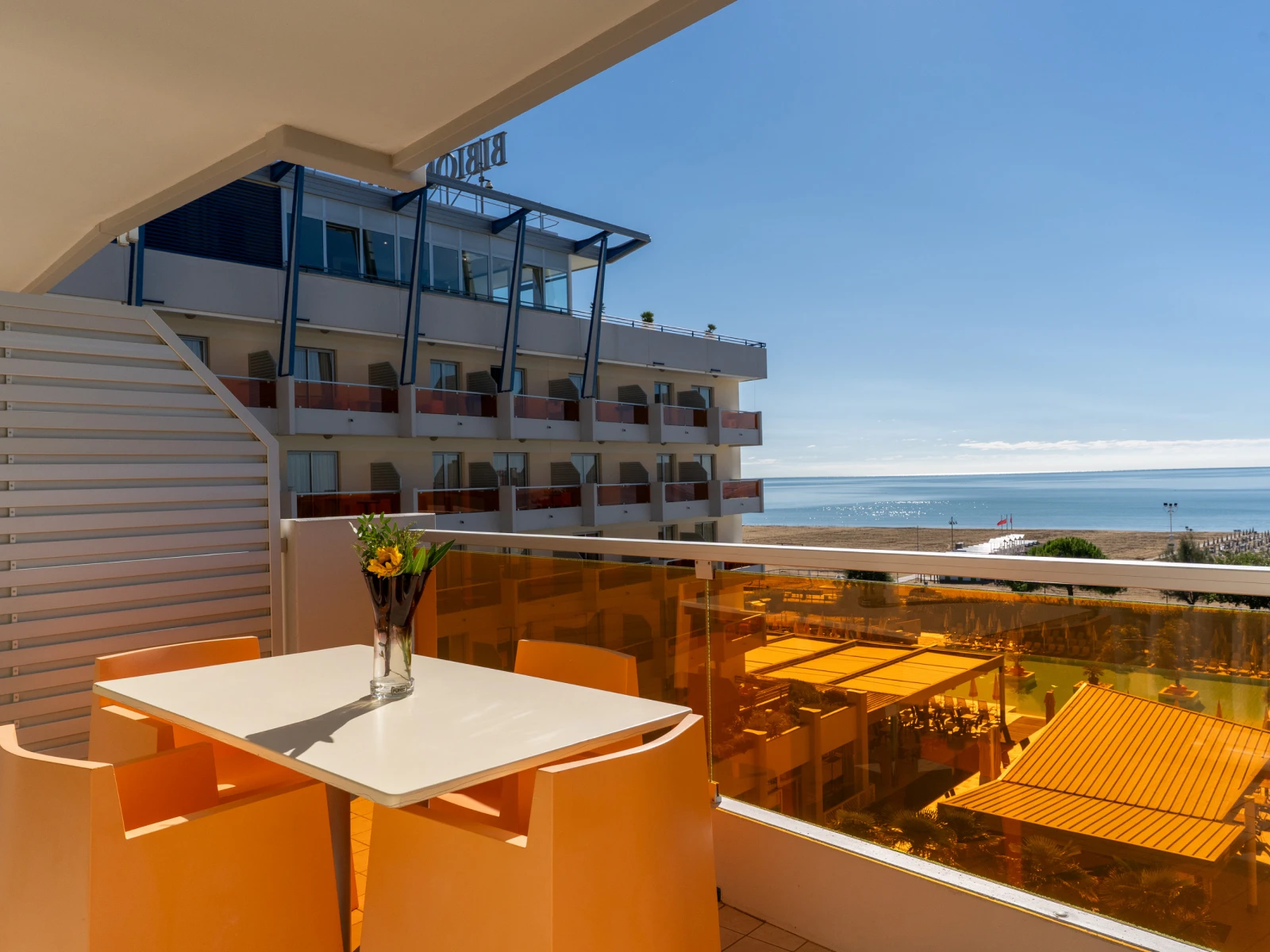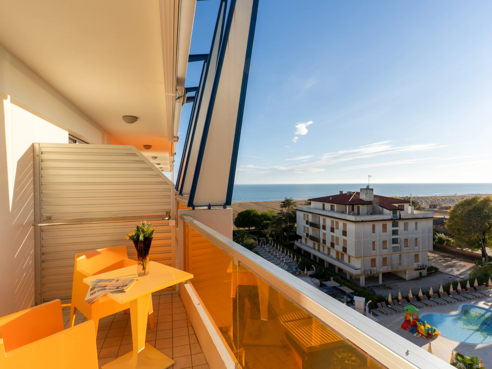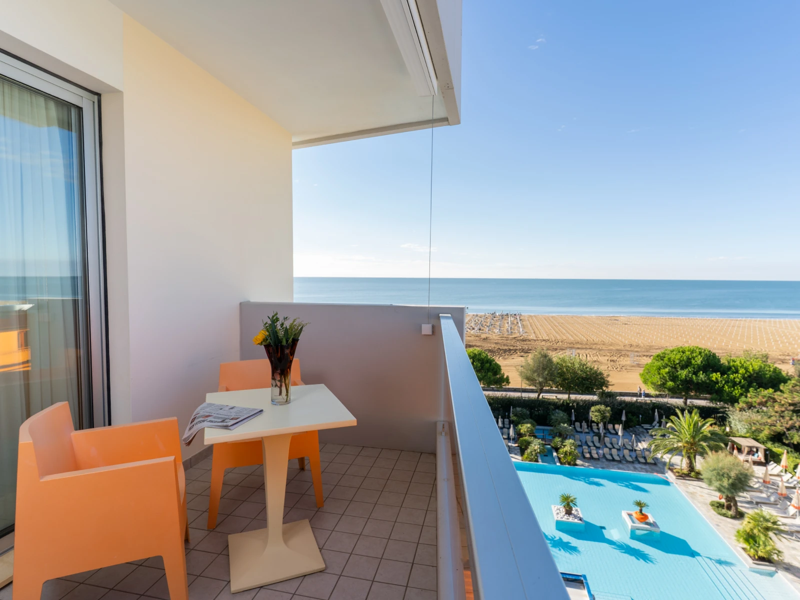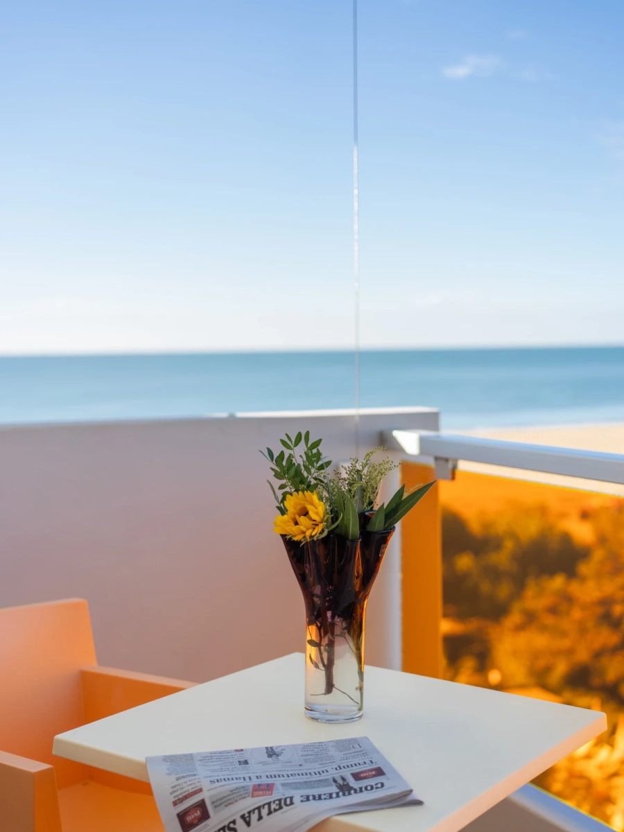 | 1Kid ParadiseMini Club, parco giochi interno e area giochi esterna; baby piscina riscaldata con scivolo; attività ludiche in hotel e spiaggia. | 2Fronte mareSulla spiaggia, senza attraversamenti, con ombrelloni, lettini, gazebo riservati agli ospiti e animazione bimbi. | 3Piscine e wellnessUna piscina esterna di 25 mt, una piscina bimbi riscaldata; una piscina interna panoramica, accanto alla Sky Spa al 6° piano. |