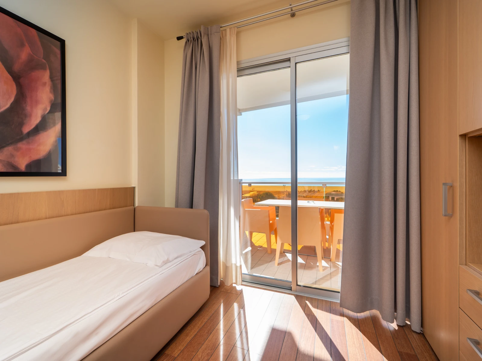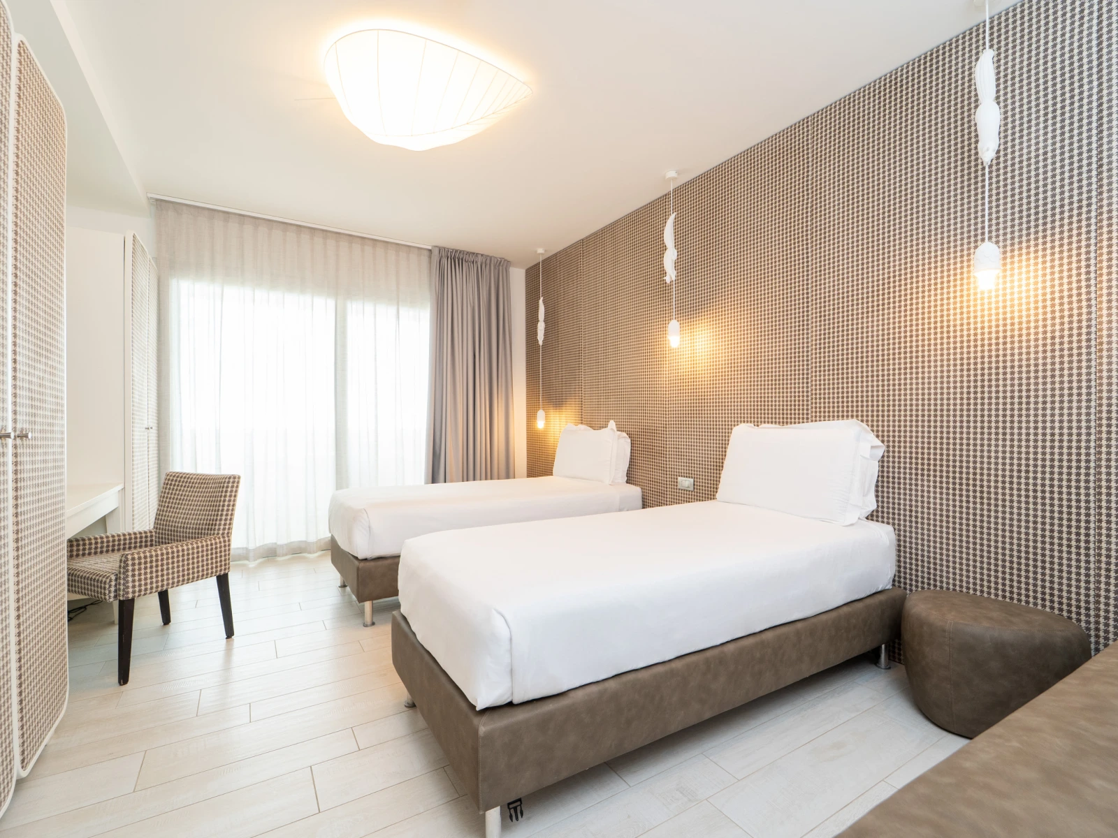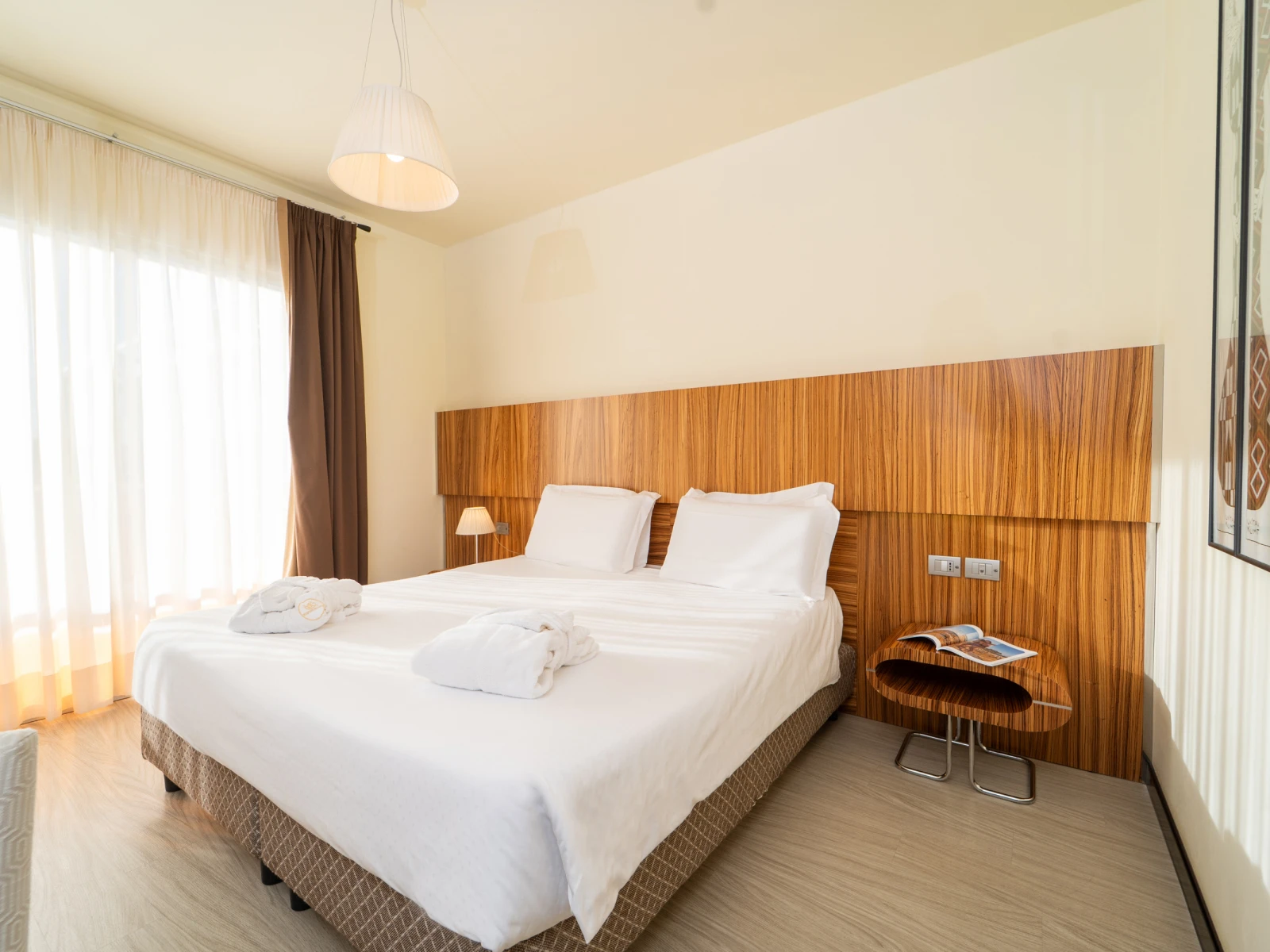 Easy SuiteDimensione:32 mq Persone:2/4 Struttura:2 ambienti separati con angolo cottura Un’accogliente e moderna Suite con terrazzo, caratterizzata da una camera matrimoniale con letto divisibile all’occorrenza, e da un soggiorno con comodo divano letto e angolo cottura, così puoi scaldare il latte e preparare le pappe per i tuoi piccoli. | Easy Suite |