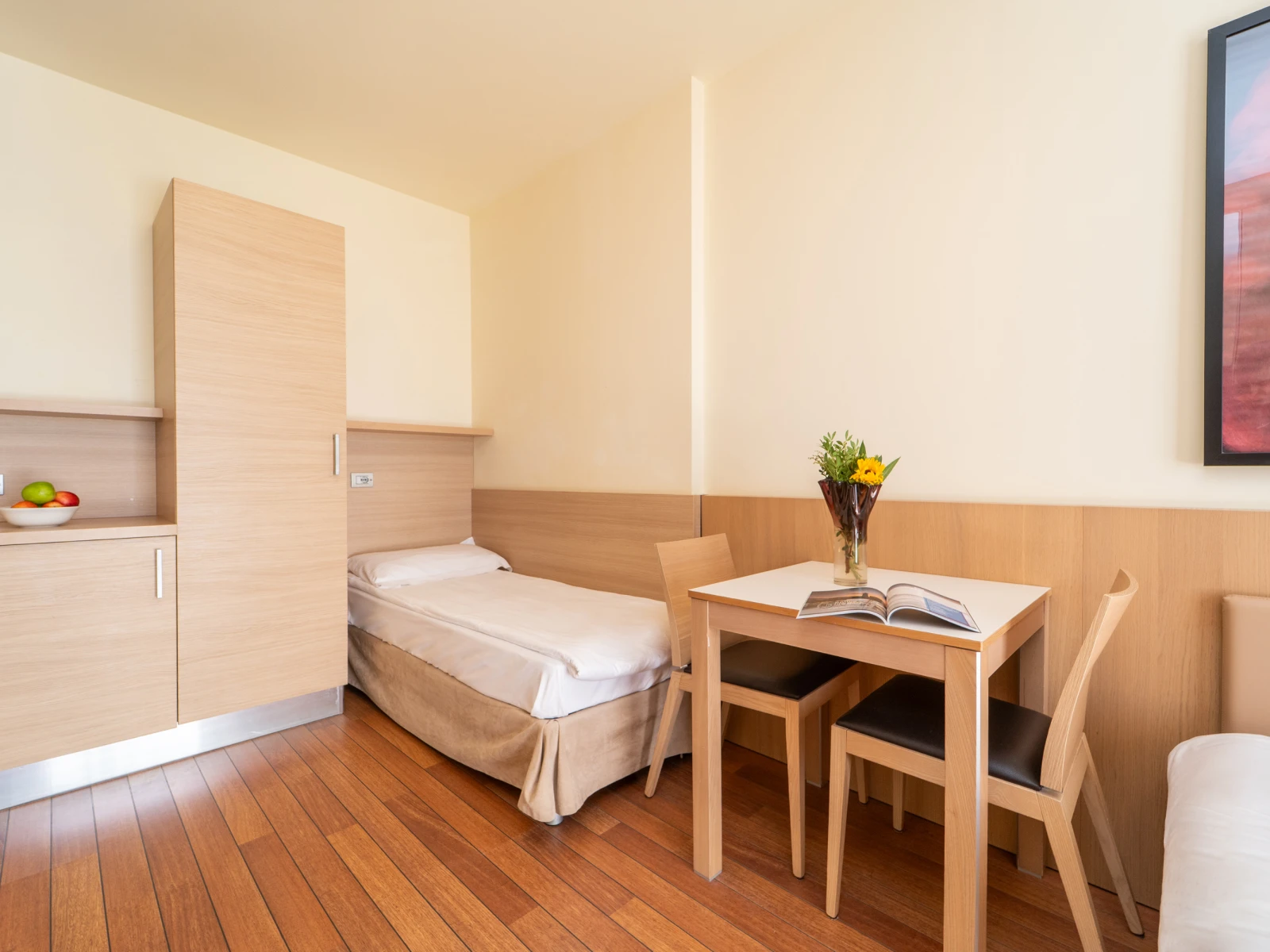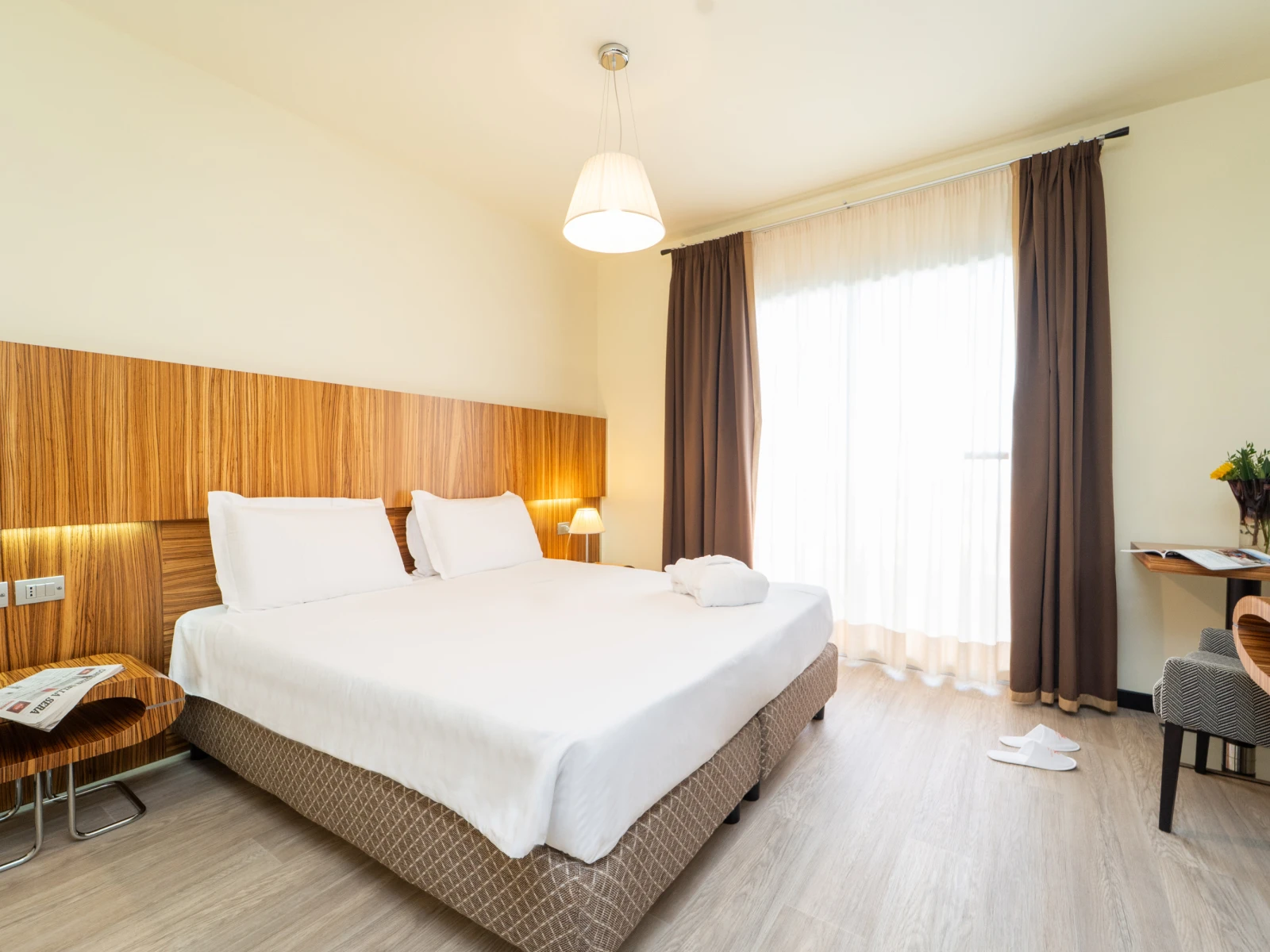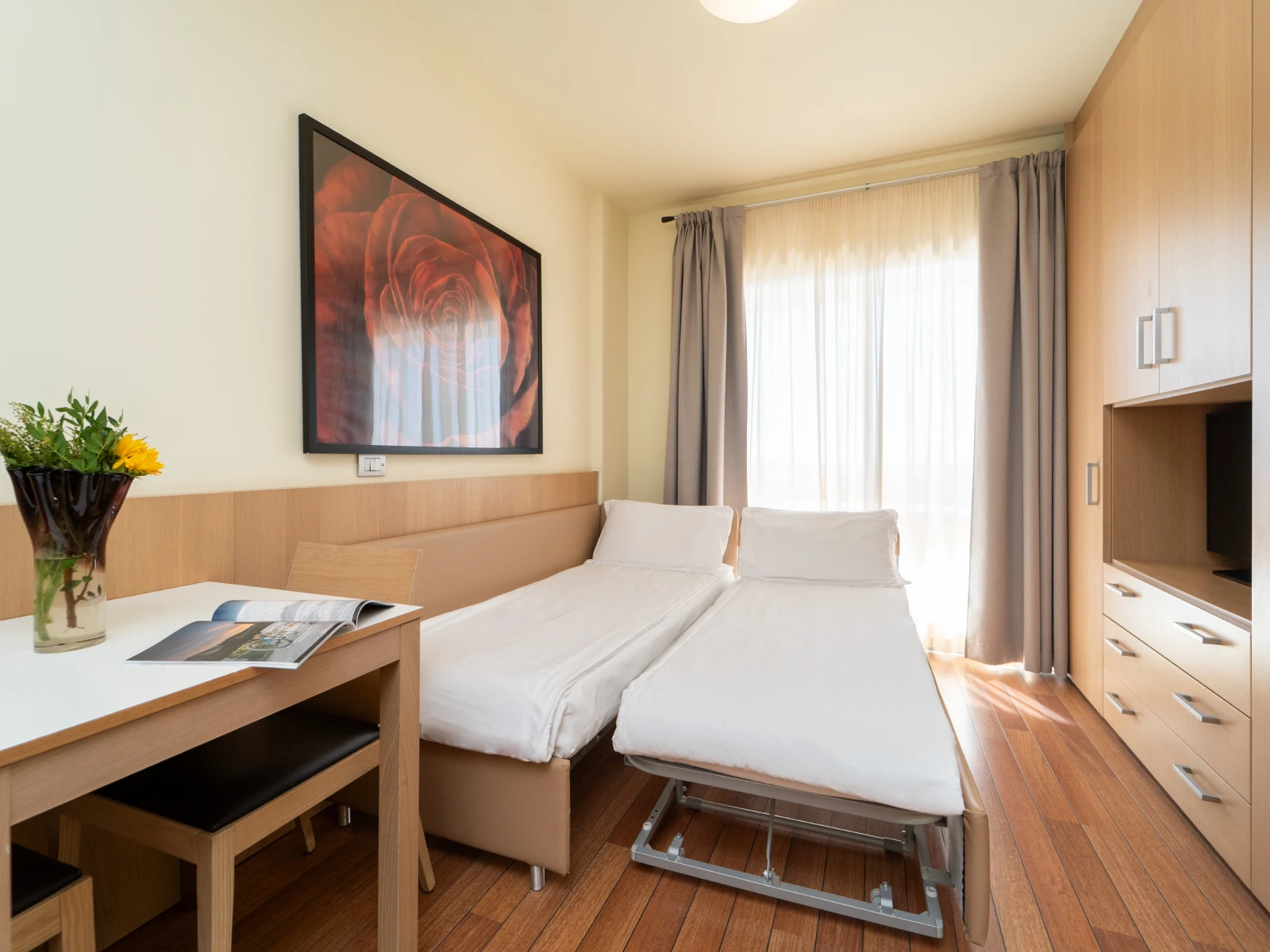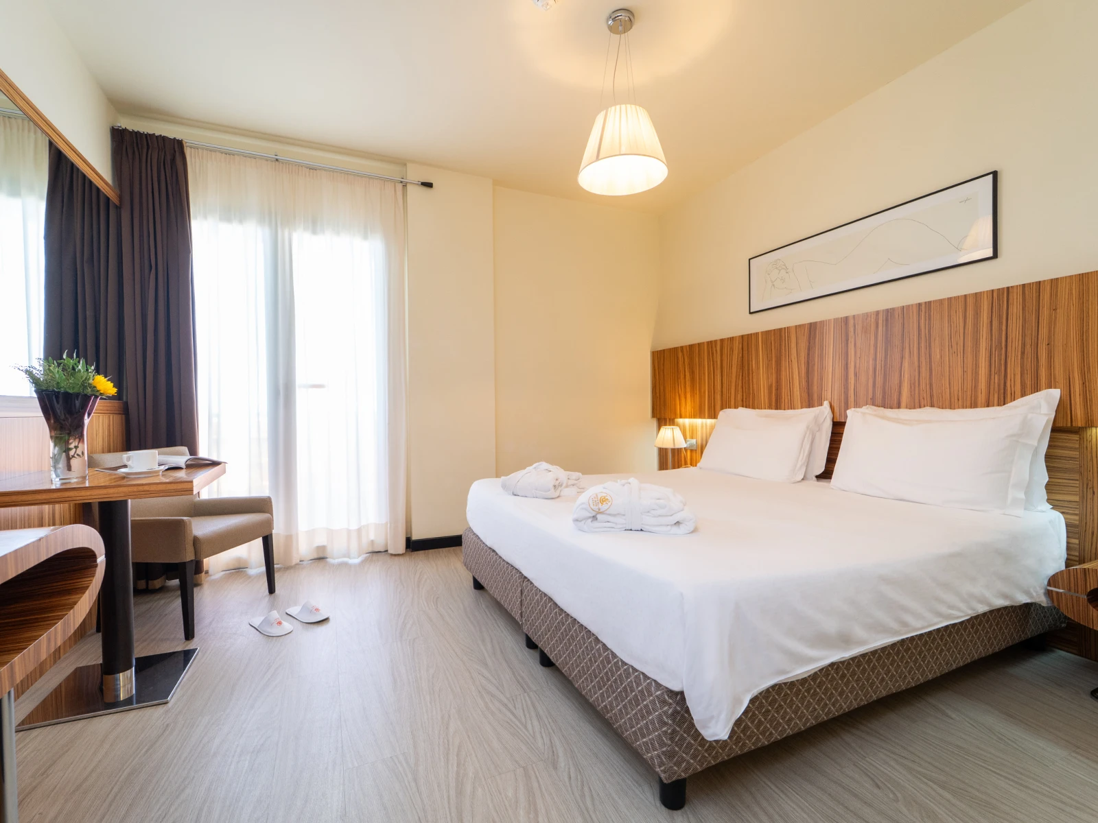 Easy SuiteDimensione:32 mq Persone:2/4 Struttura:2 ambienti separati con angolo cottura Un’accogliente e moderna Suite con terrazzo, caratterizzata da una camera matrimoniale con letto divisibile all’occorrenza, e da un soggiorno con comodo divano letto e angolo cottura, così puoi scaldare il latte e preparare le pappe per i tuoi piccoli. | Easy Suite |