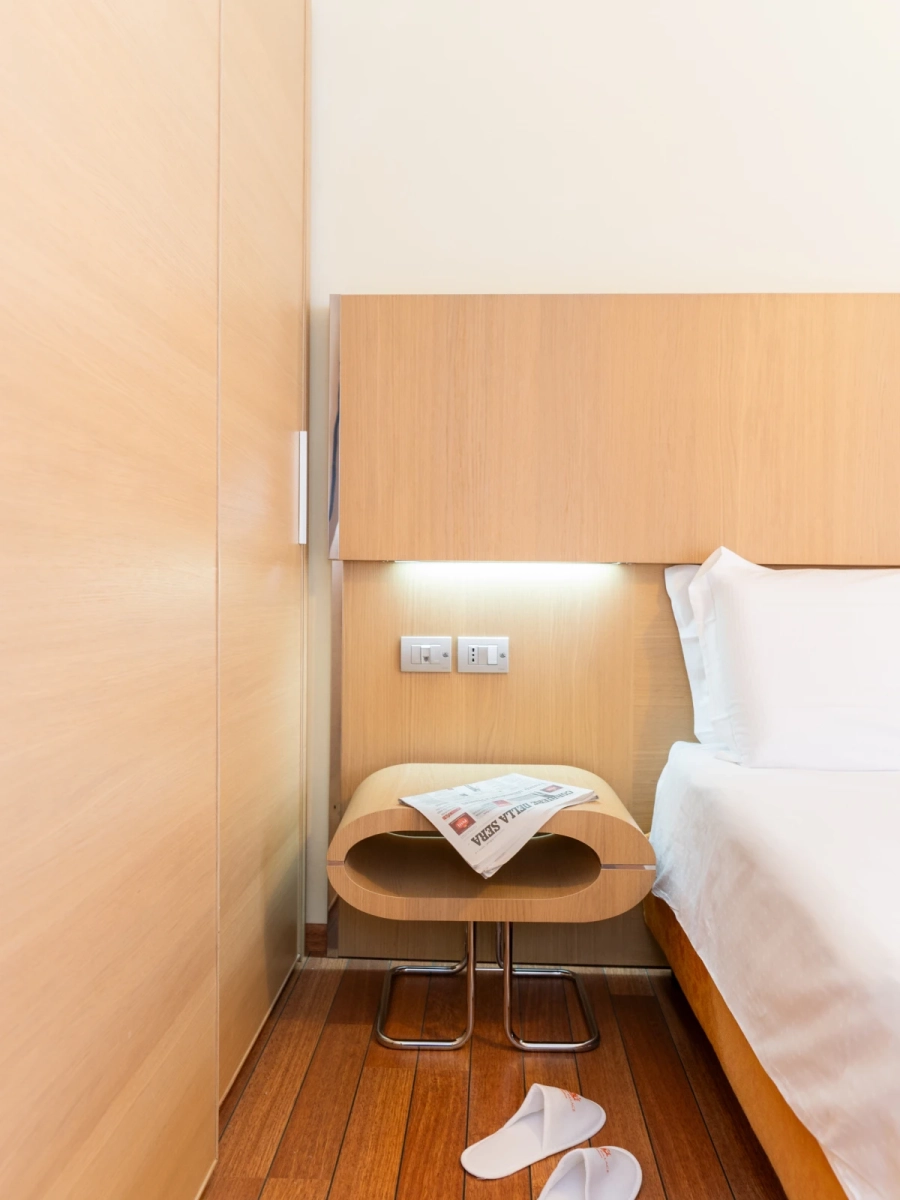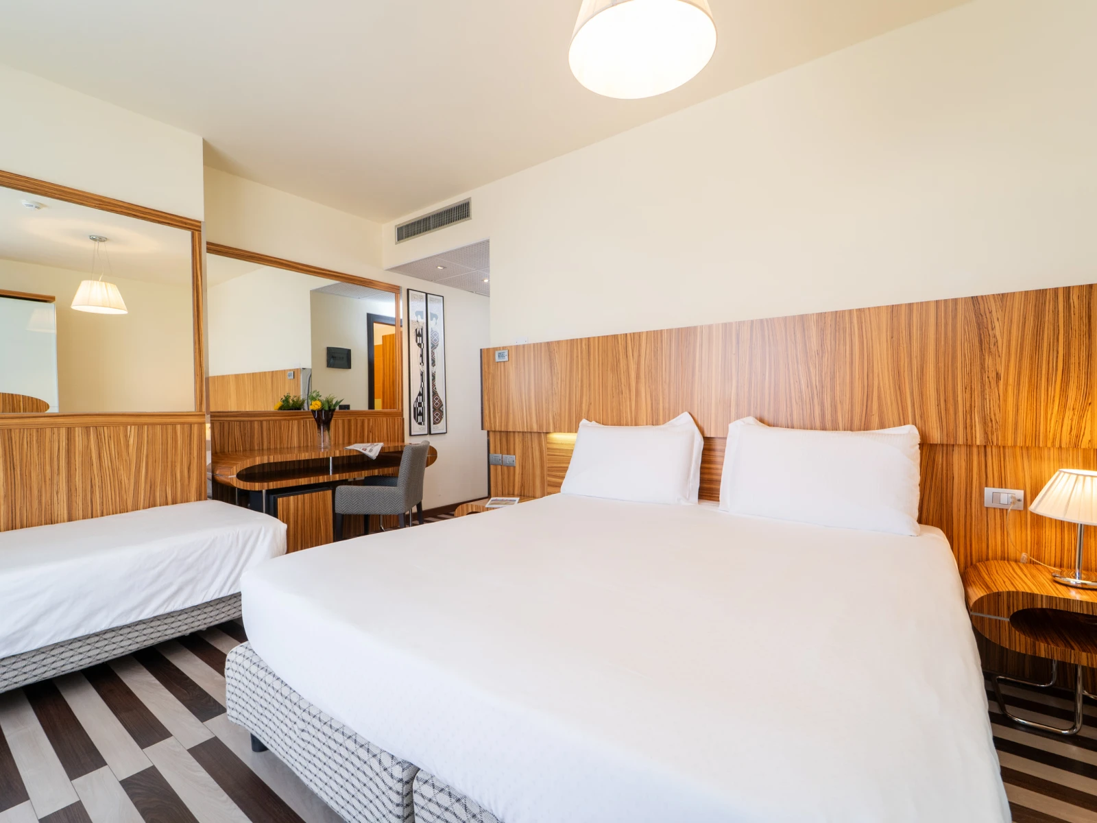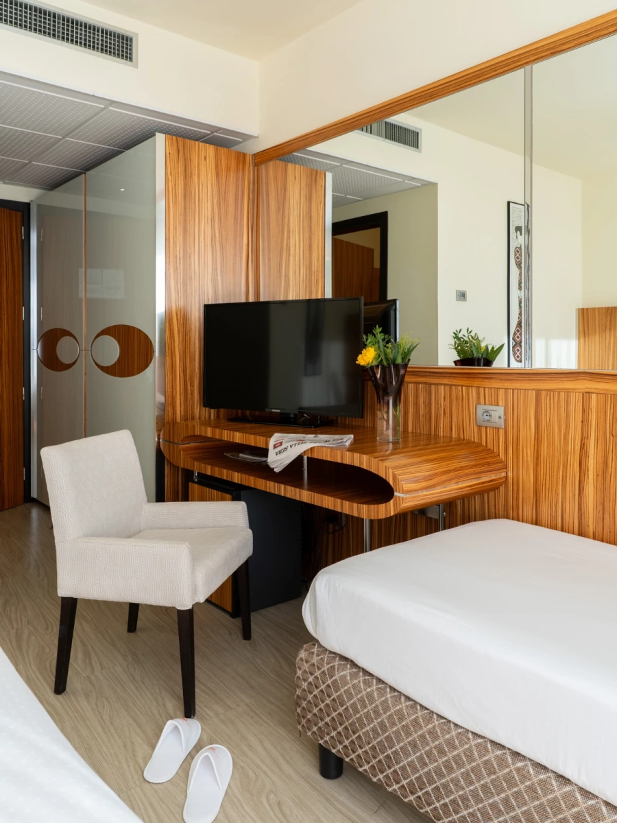 Living DoubleDimensione:22 mq Dimensione:2 Viaggi con il tuo bebè? Questa è la camera perfetta per le tue esigenze, comodissima per due adulti e un bimbo fino a 2 anni, grazie alla possibilità di aggiungere una culla. Nella Living Double hai anche a disposizione un terrazzo. | Living Double |