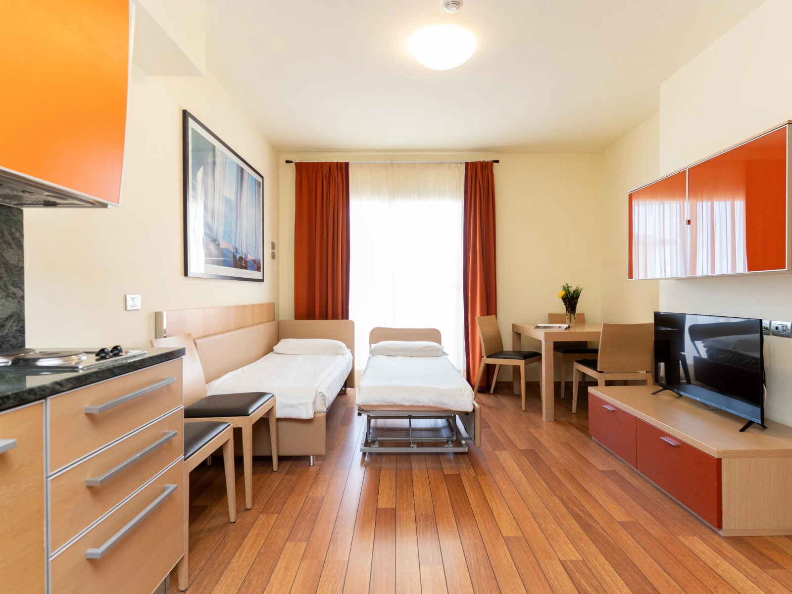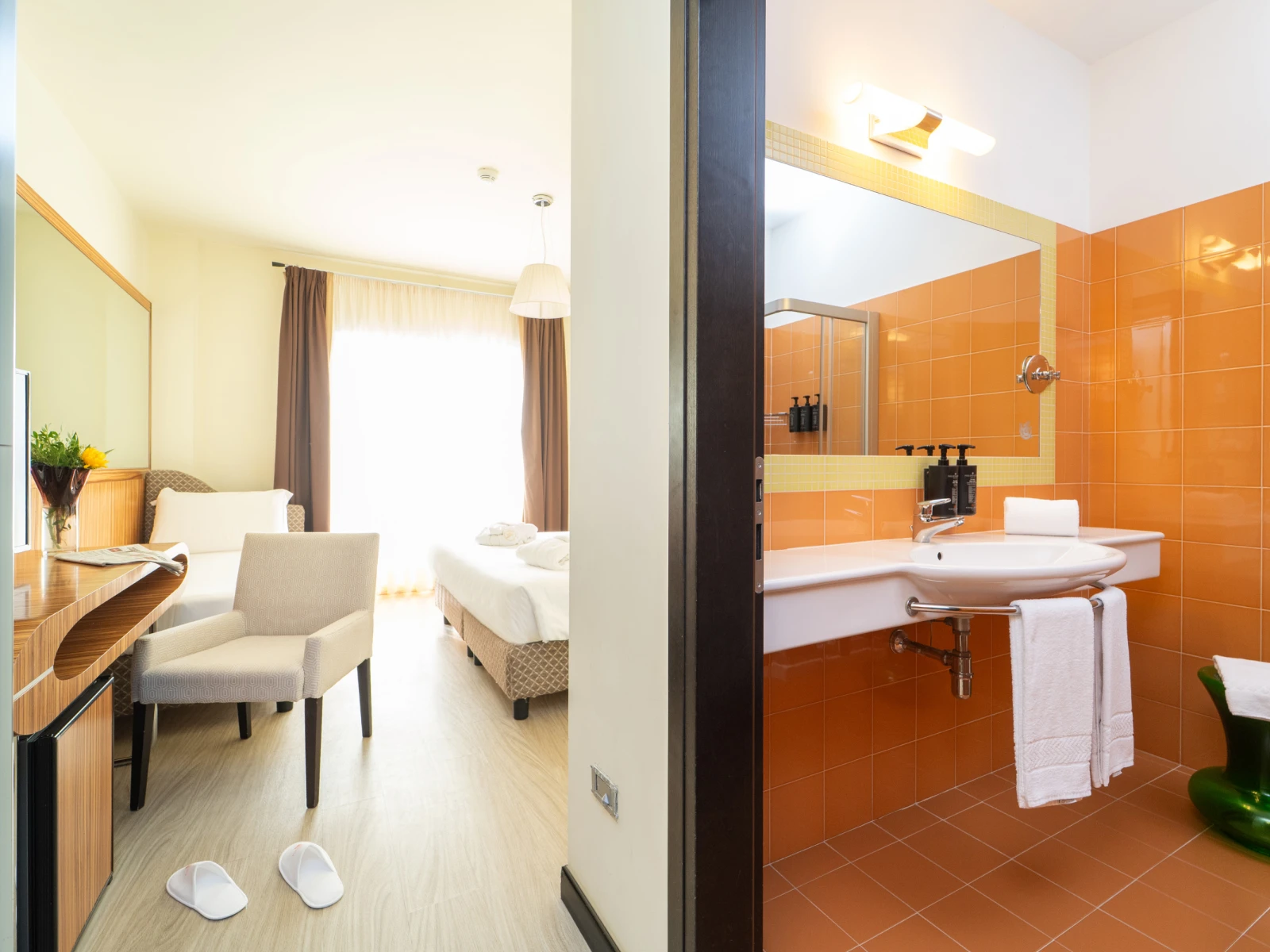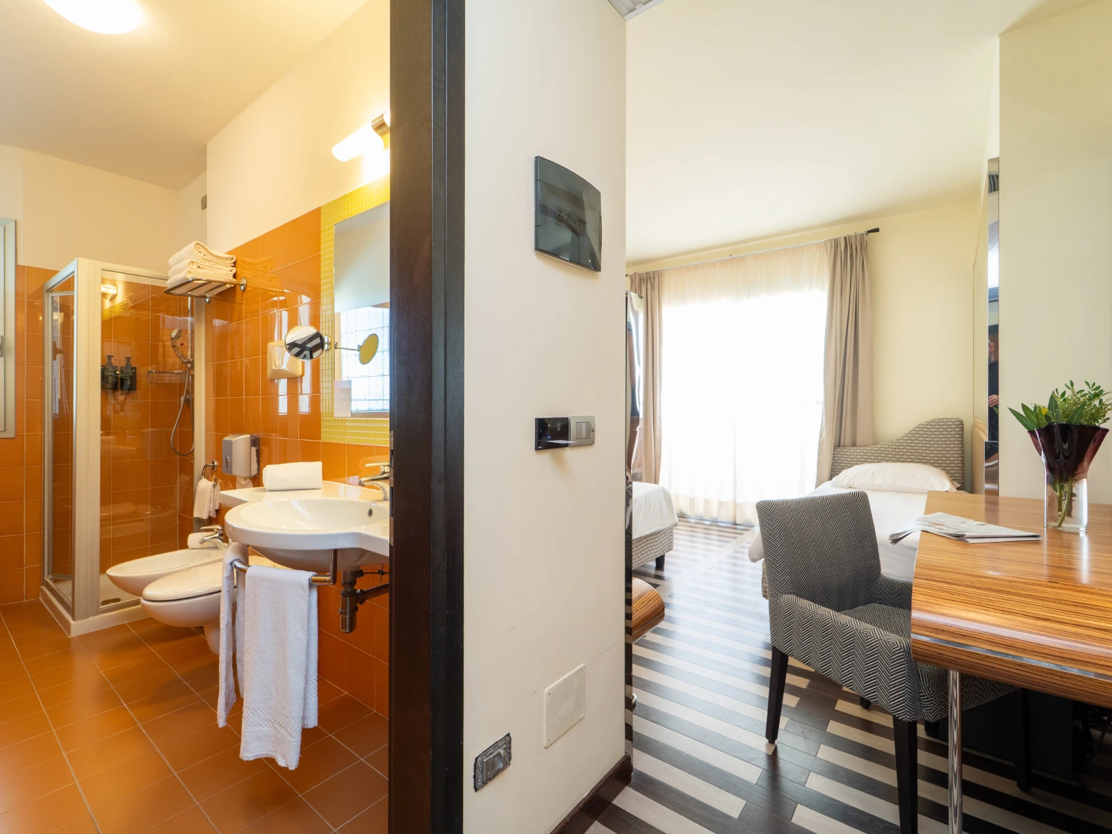 Aria condizionataFree Wi-FiServizio in cameraCamere insonorizzateSet cortesiaCassaforteSveglia telefonicaRiduttori WC e sgabelliniLetti con spondine, culle, scalda biberon, fasciatoiLiving Orange | Living OrangeDimensione:22 mq Persone:2 Camera moderna, ideale per 2 persone, particolarmente indicata per 1 adulto e 1 bambino sino ai 10 anni ( La Living Orange ha anche un piacevole terrazzo. |