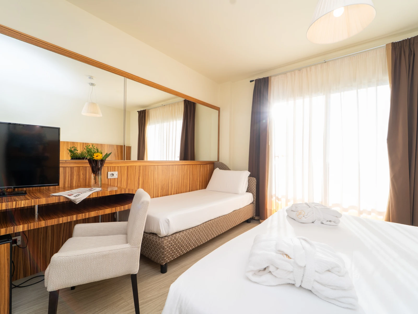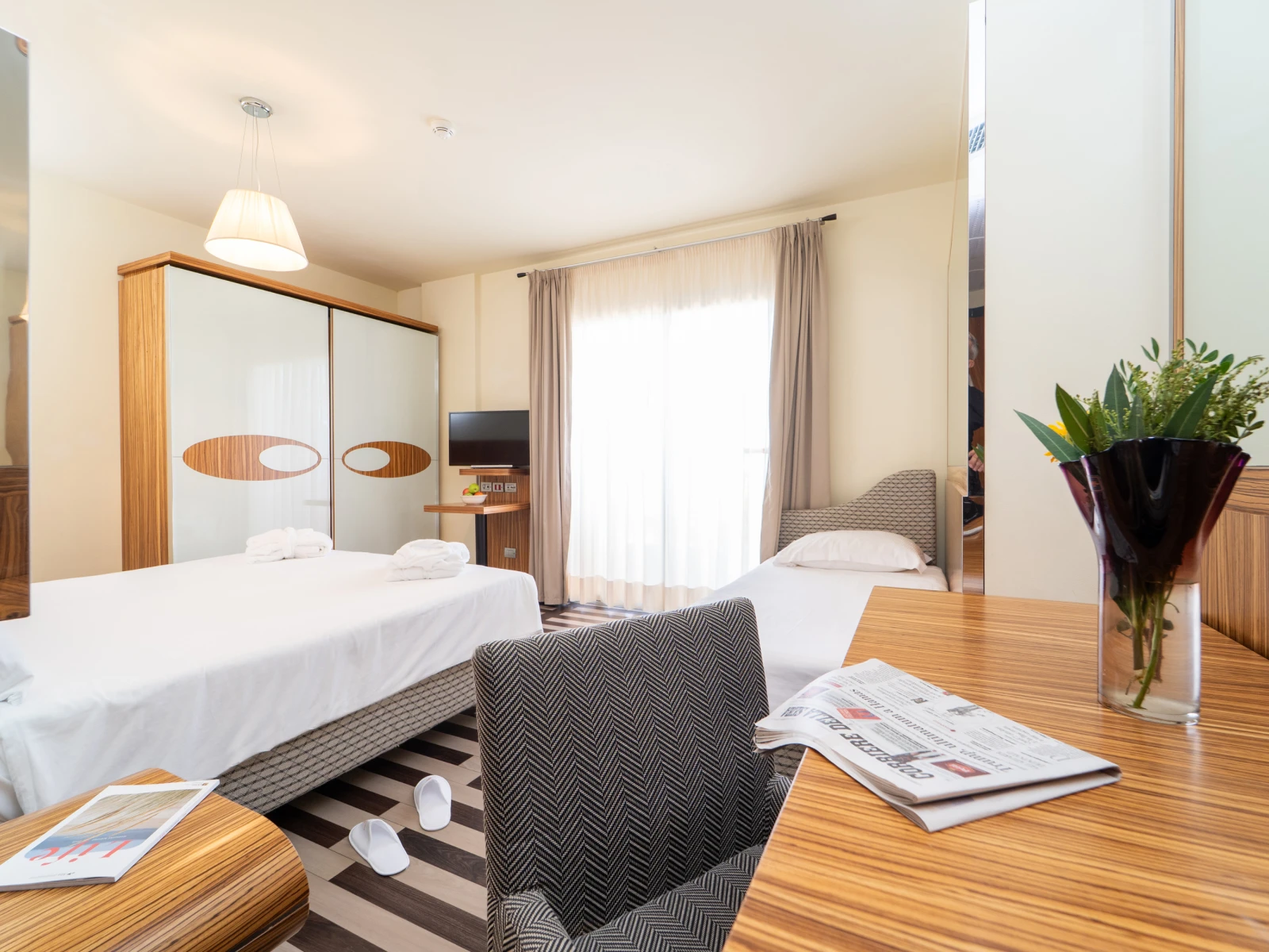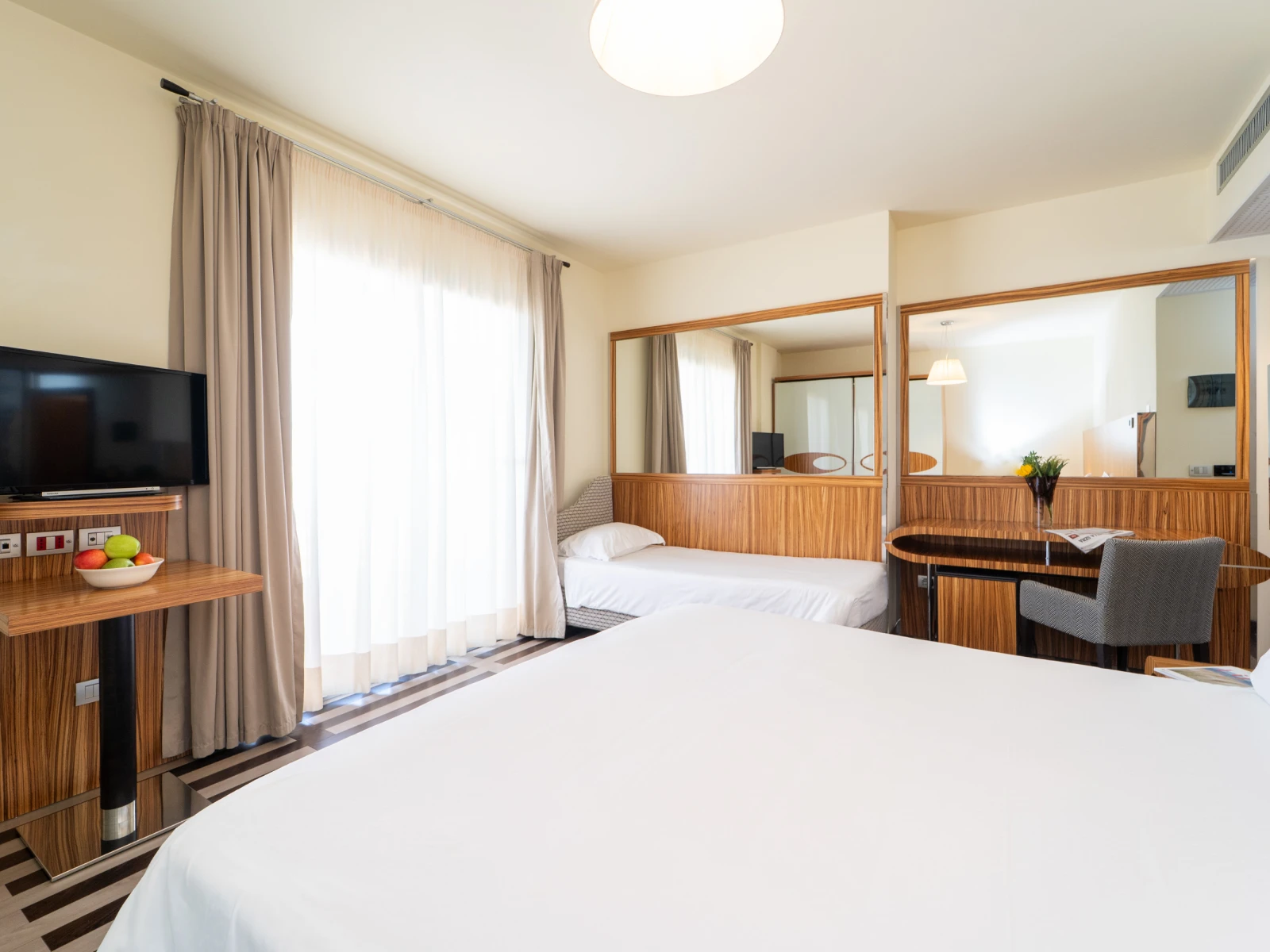 Living TripleDimensione:22 mq Persone:2/3 La camera è dotata di terrazzo e, grazie agli spazi confortevoli, è la soluzione perfetta per le mamme e i papà che viaggiano con un bambino o un teenagers a partire dai 11 anni. | Living Triple |