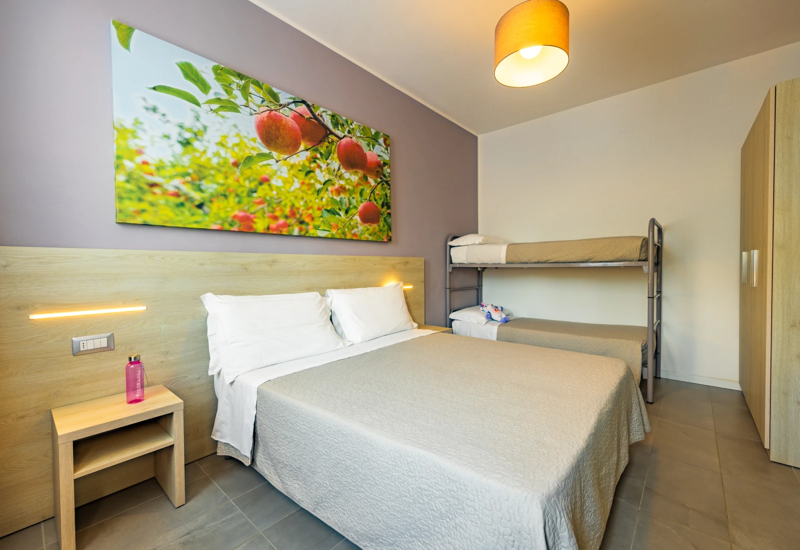 Superior | SuperiorDimensione:18-20 mq Camere ideali per le famiglie più numerose, possono ospitare fino a 5 persone e dispongono di letto matrimoniale + letto a castello + culla o, su richiesta, letto corto per bambini fino a 8 anni. |