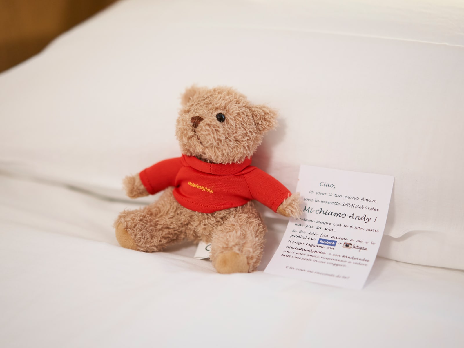 Salut les enfants, je suis Andy, la douce mascotte de l’Hôtel Andes ! Je suis un ours curieux, j’aime le ski, les randonnées dans les bois et la plongée dans les lacs de montagne. Et puis je suis très gourmant et mon moment préféré de la journée est le goûter, juste après les jeux dans la piscine ! Je vous attends pour jouer tous ensemble et découvrir les secrets de la montagne ! | ![]() |