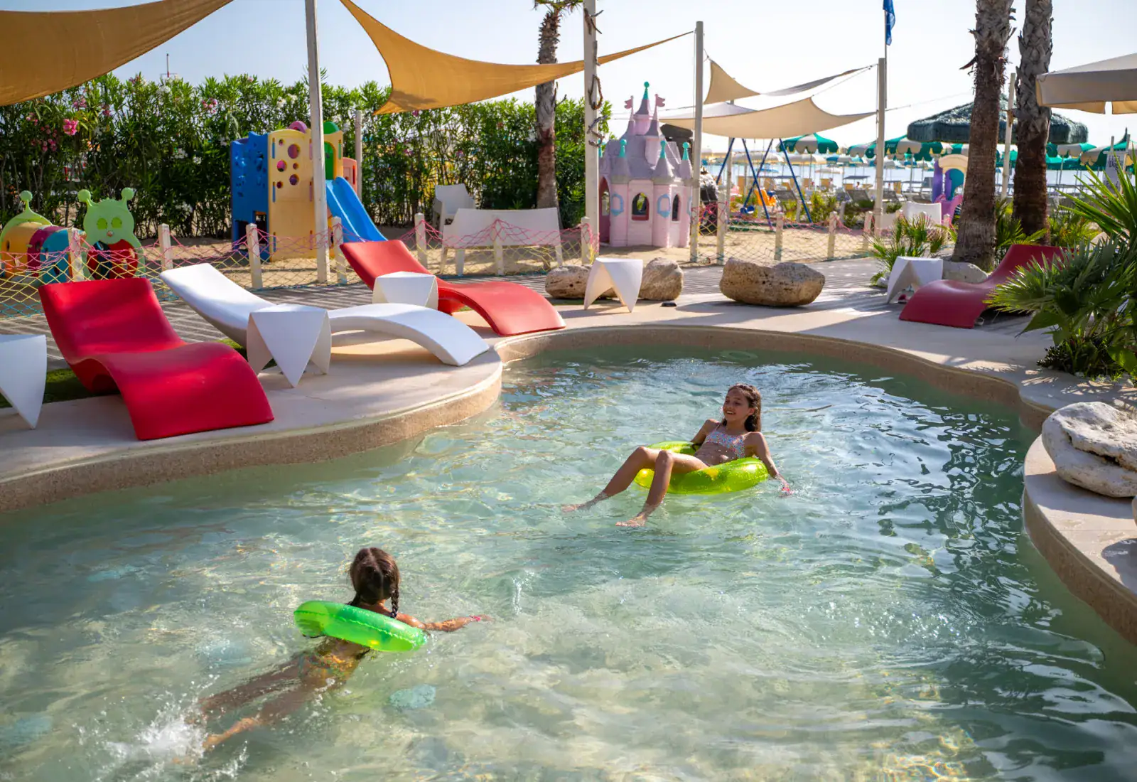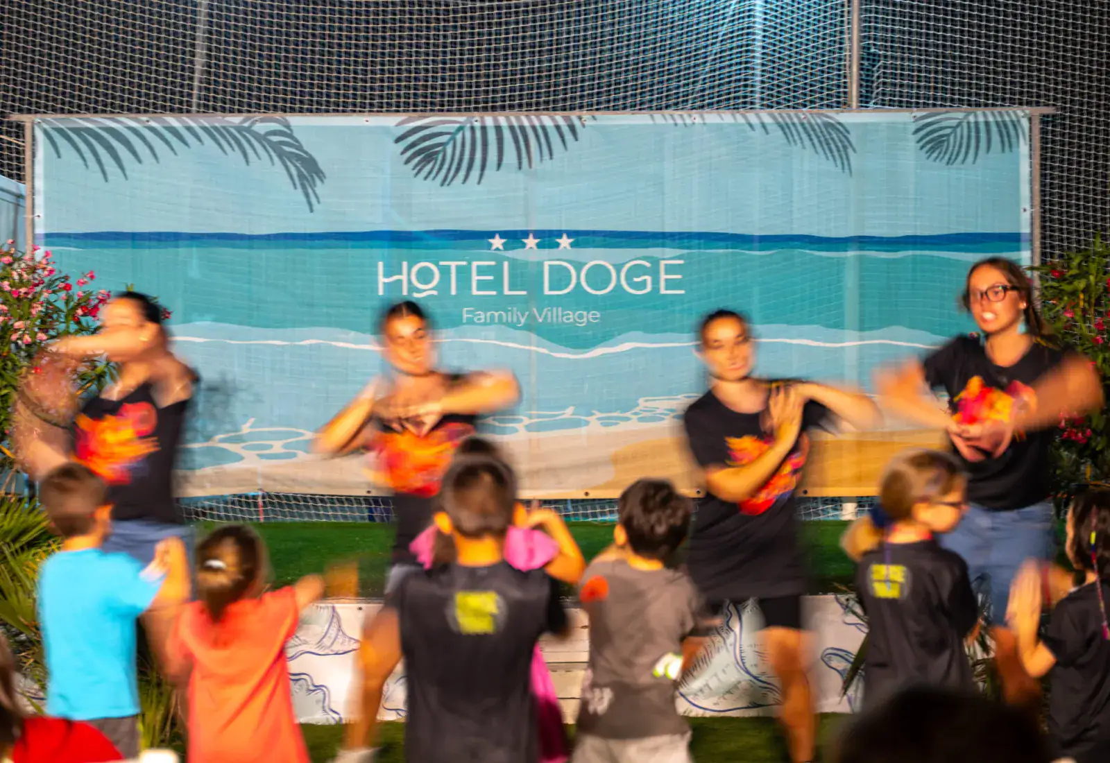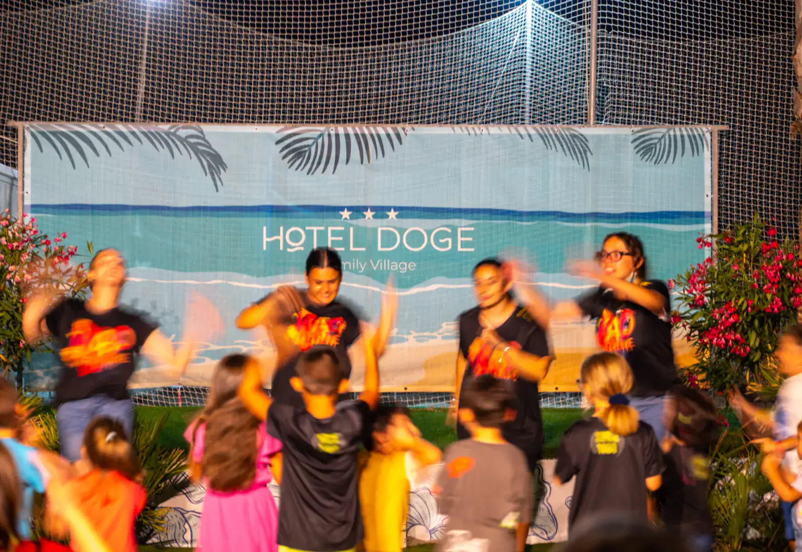 Nos animations impliquent non seulement les enfants, mais également toute la famille, dans des jeux, des tournois sportifs, de l’aquagym, du stretching et des danses de groupe sur la plage. Pour les plus petits, nous réservons notre Mini Club, où ils pourront s’amuser entre plage, ateliers, collations, châteaux de sable et baignades dans la piscine ; tandis qu’à l’hôtel, ils disposeront de vastes espaces dans le jardin et dans la salle pensée pour eux avec jeux, livres illustrés, salle TV et jeux numériques interactifs. Après le dîner, nous proposons 6 soirées à thème par semaine, pour toute la famille.