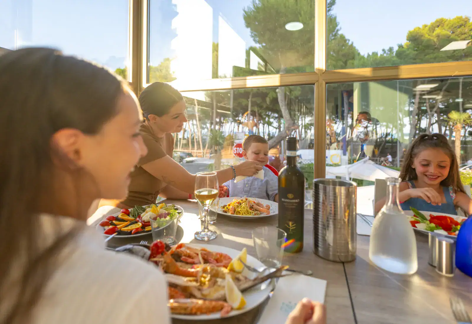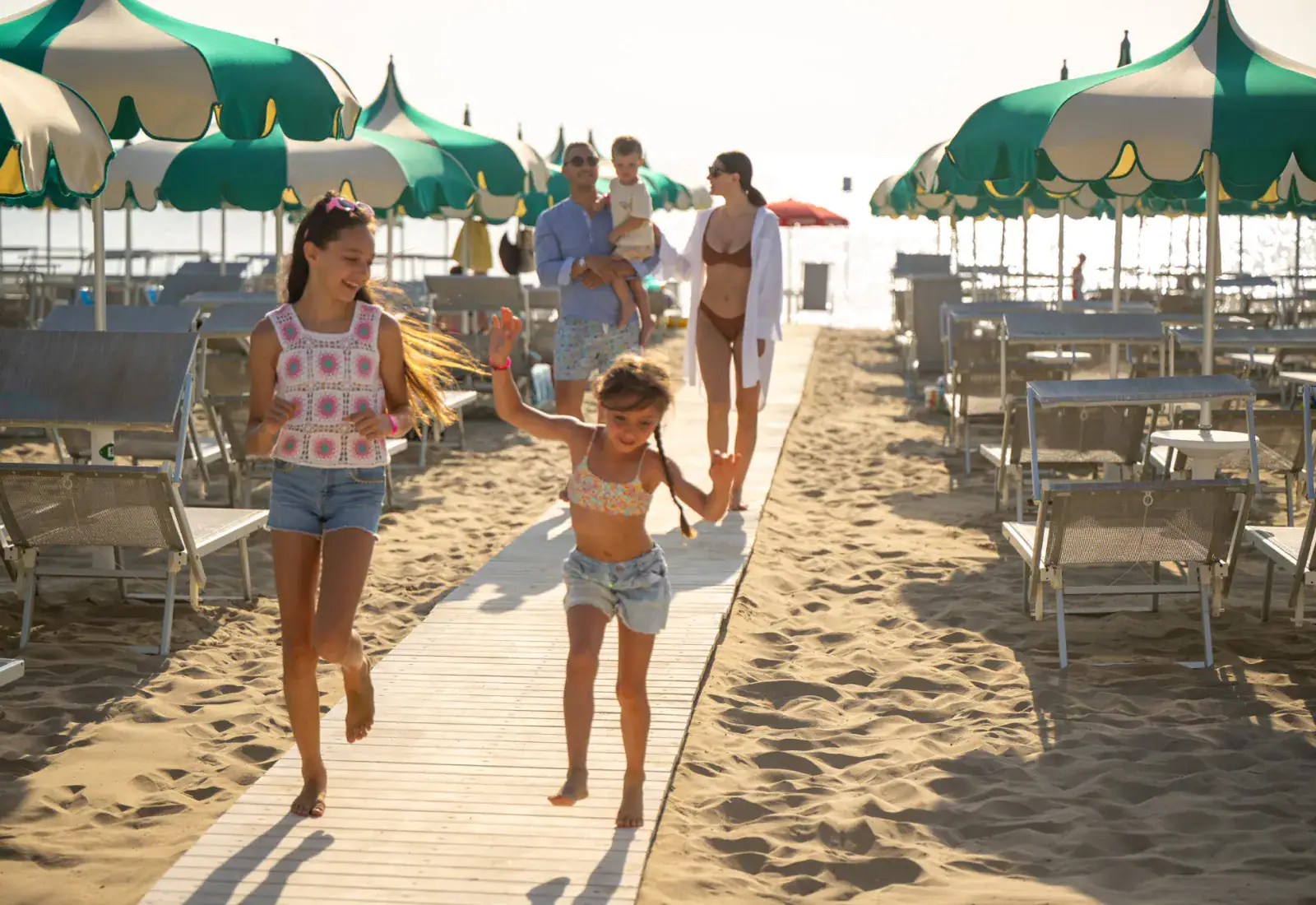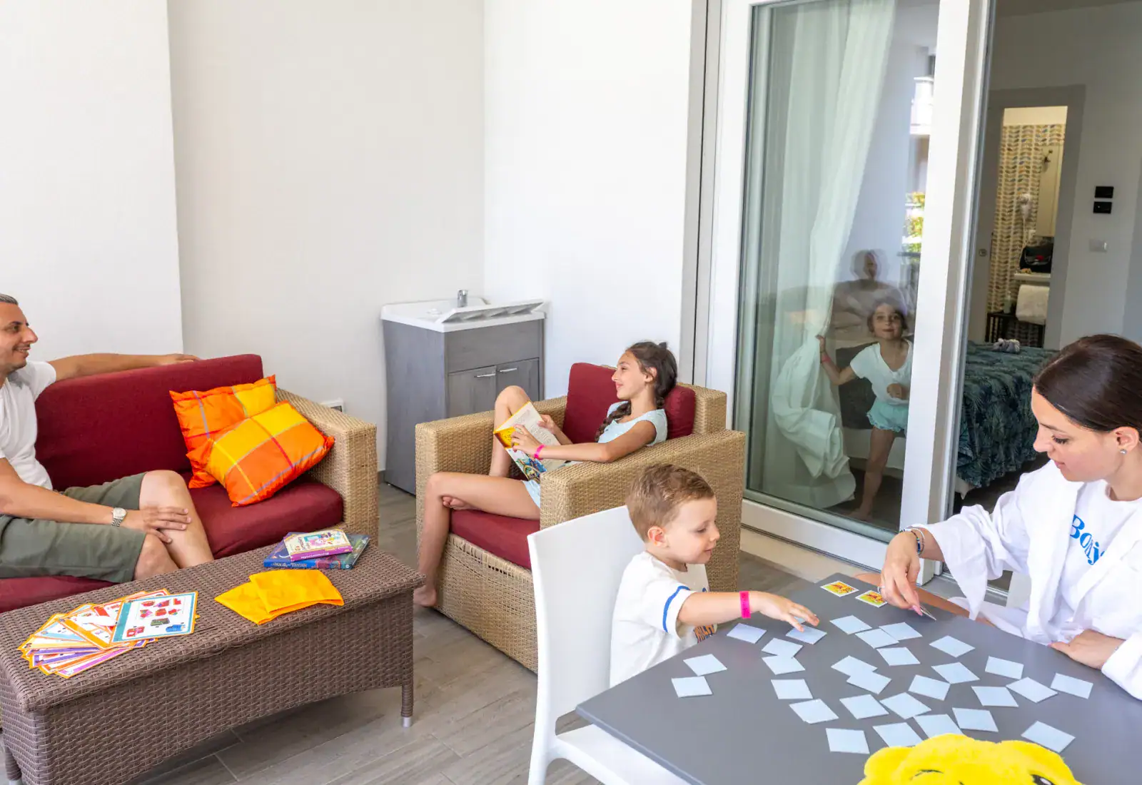 Nos animations impliquent non seulement les enfants, mais également toute la famille, dans des jeux, des tournois sportifs, de l’aquagym, du stretching et des danses de groupe sur la plage. Pour les plus petits, nous réservons notre Mini Club, où ils pourront s’amuser entre plage, ateliers, collations, châteaux de sable et baignades dans la piscine ; tandis qu’à l’hôtel, ils disposeront de vastes espaces dans le jardin et dans la salle pensée pour eux avec jeux, livres illustrés, salle TV et jeux numériques interactifs. Après le dîner, nous proposons 6 soirées à thème par semaine, pour toute la famille.
