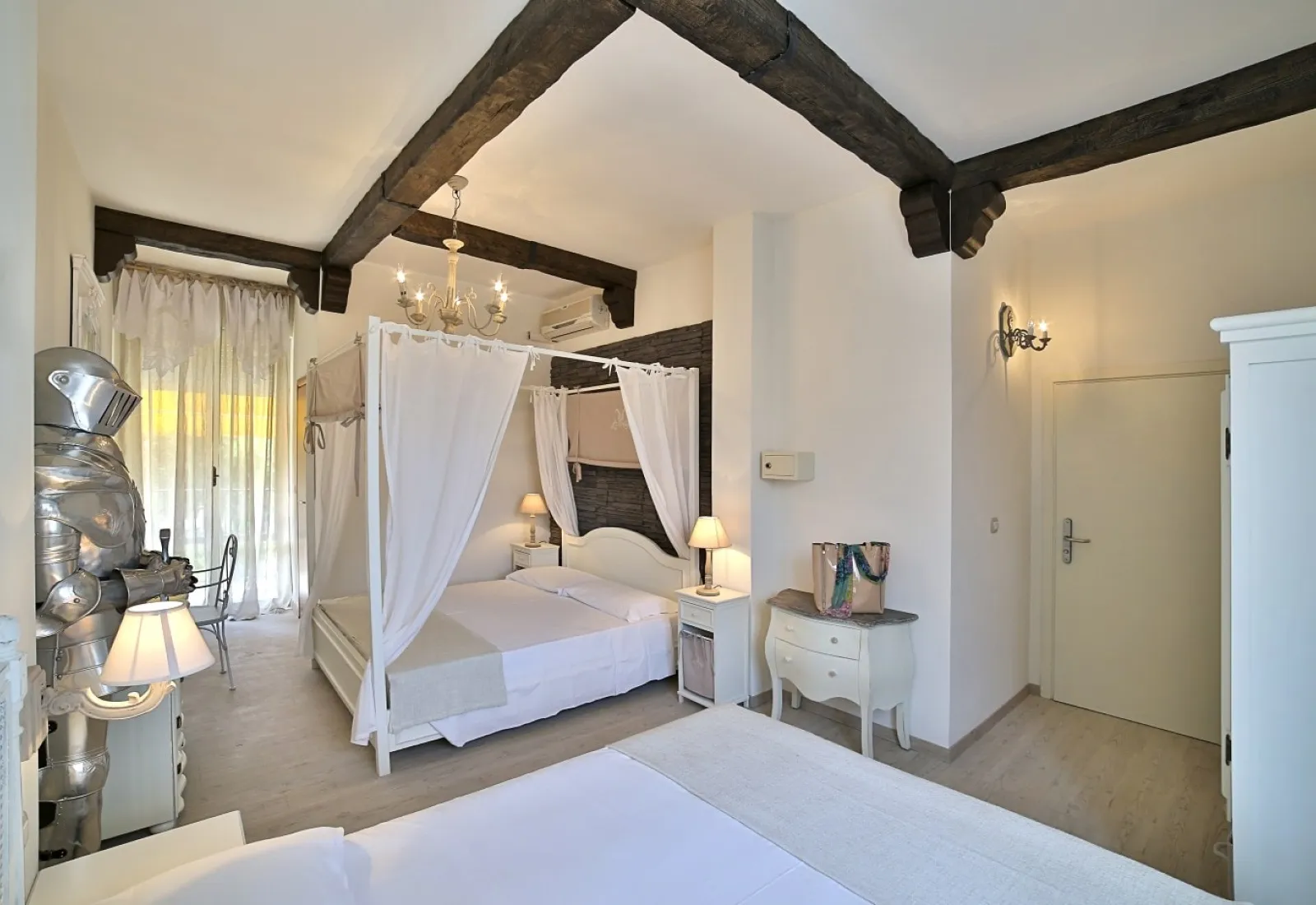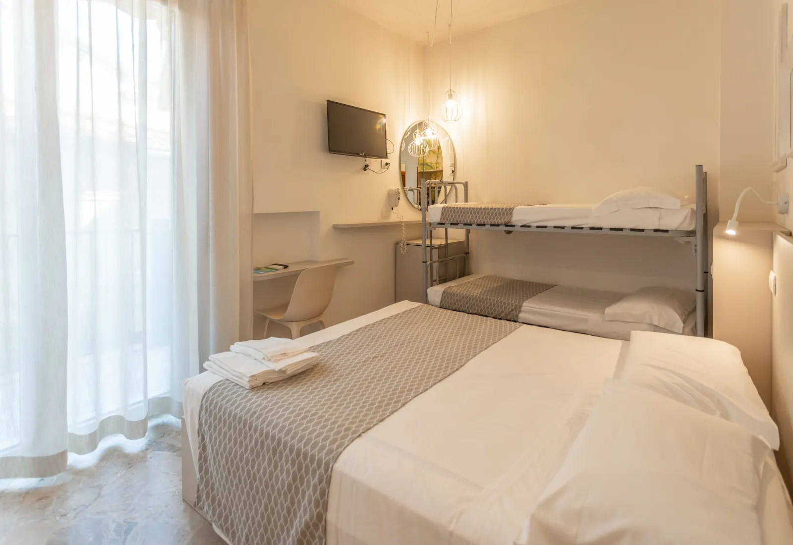 Chambre SuperiorDimensions :17-23 m² Personnes :45080 Originales et fantastiques chambres familiales à thème, certaines communicantes ou mansarde. Parmi les nombreux services inclus, qui choisit de séjourner dans les chambres Superior disposera d’un logement sur la plage avec parasol et deux transats, boisson non alcoolisée, eau et vin à la pression aux repas, bar ouvert H24 avec cafétéria et boissons sans alcool, place de parking dans le jardin. | Chambre Superior |