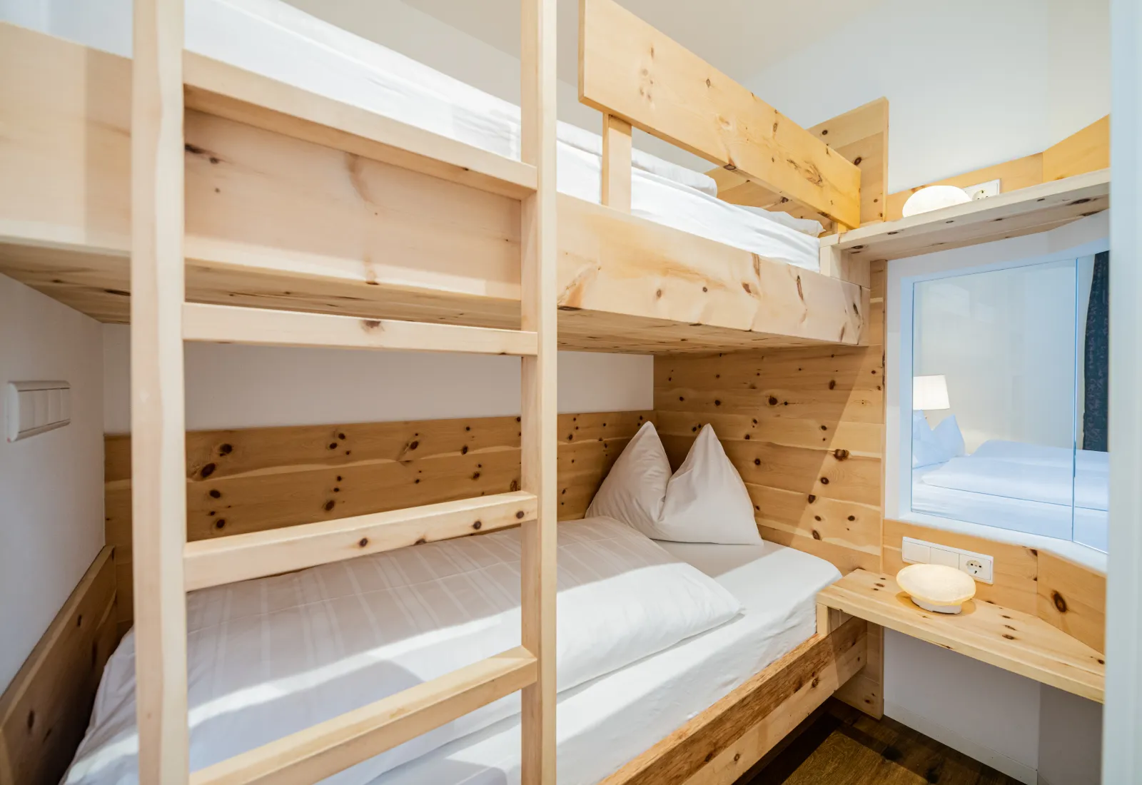 Suites Fameli Design | Suites Fameli DesignDimensions :42 m² Personnes :45018 Vue :Montagne Un mélange parfait entre simplicité et élégance, avec une touche de luxe, rend les Suites Family Deluxe parfaites pour les familles avec un ou deux enfants. Il existe les solutions suivantes : lit à deux places, deux canapés-lits, hydromassage Jacuzzi ; lit à deux places, lit superposé, baignoire hydromassage Jacuzzi ; lit à deux places et petite chambre séparée pour les enfants, dotée d’un lit superposé, avec ou sans bain à remous. |