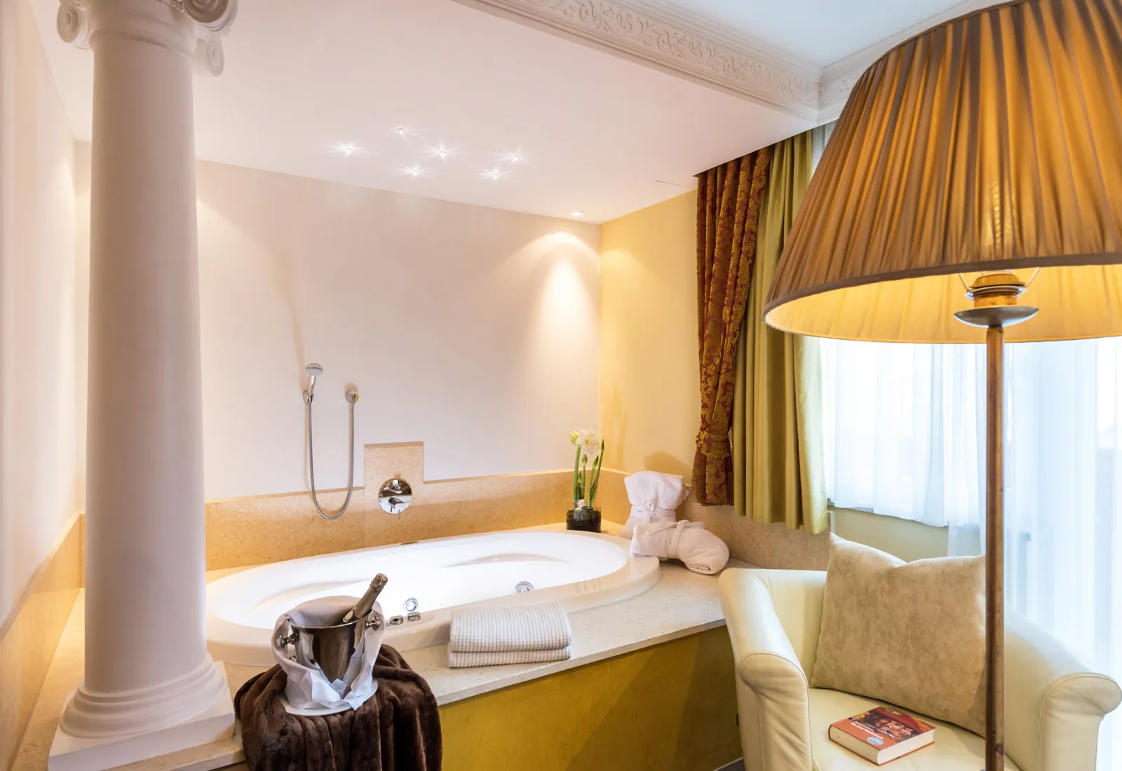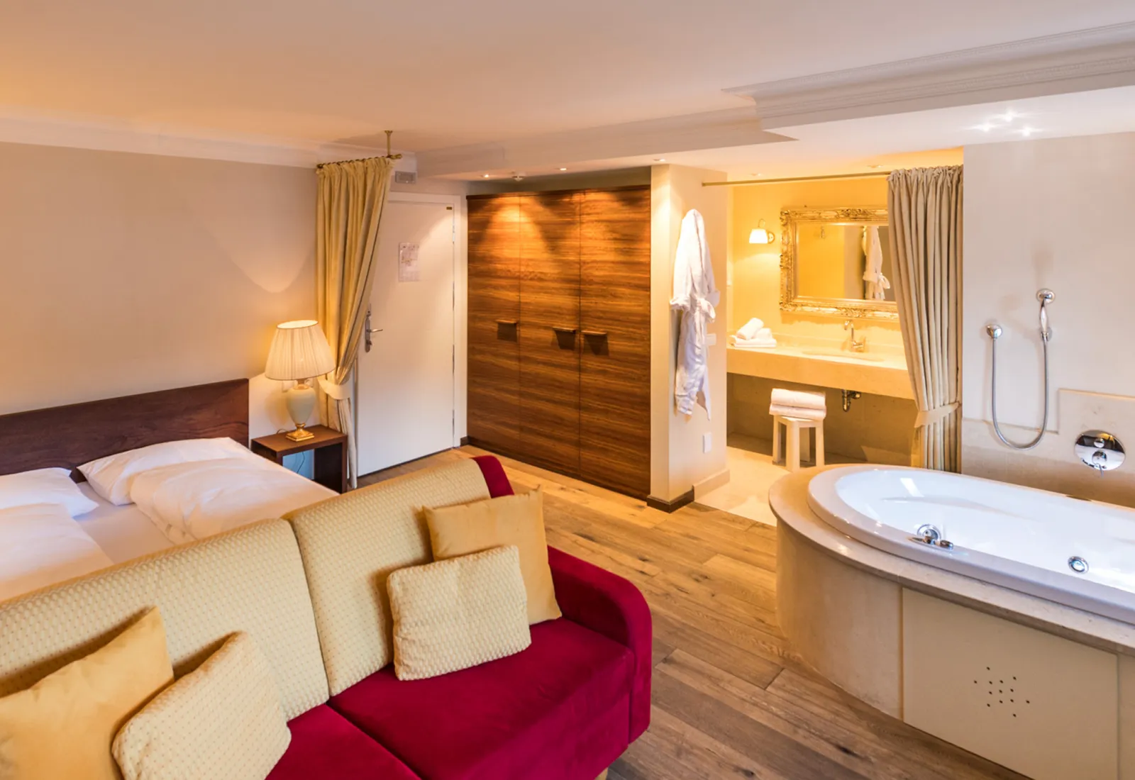 Suite Fameli LifestyleDimensions :50 m² Personnes :45018 Vue :Montagne Des pièces élégantes et spacieuses, appropriées pour les familles avec 2 enfants et un bébé. Les Suites Family Lifestyle ont le lit à deux places, le canapé-lit double et la baignoire Spa. | Suite Fameli Lifestyle |