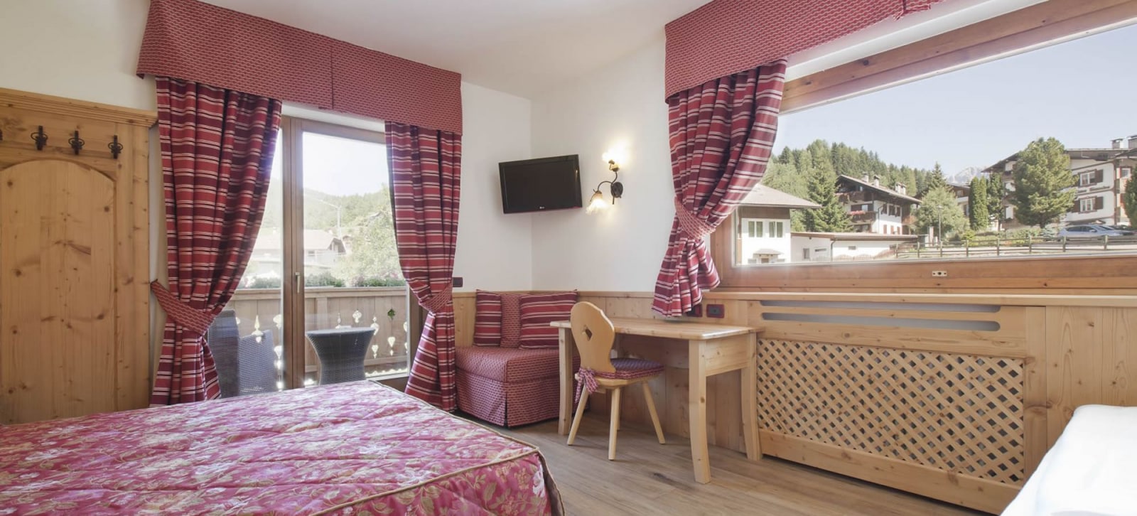 Junior SuiteDimensions :28-30 m² La plupart des chambres ont un balcon panoramique qui permet d’admirer une vue qui embrasse Moena et les Dolomites du Val di Fassa. Elles peuvent accueillir jusqu’à 4 personnes, avec la possibilité d’ajouter un lit de camping pour bébé. | Junior Suite |