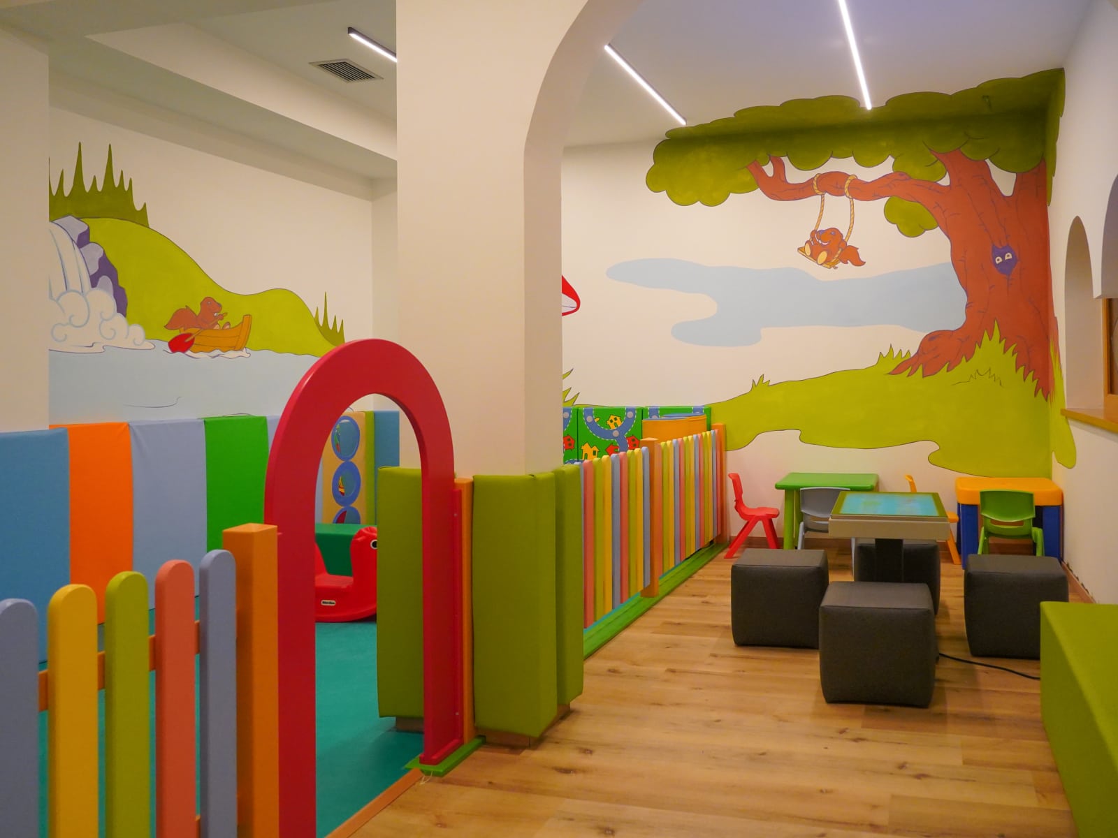 Qui choisit notre hôtel est sûrs de passer des vacances paisibles avec les enfants, de partager de nombreux moments de bonheur en famille et de découvrir la beauté de la nature environnante. L’hôtel dispose d’un espace de 500 m² exclusivement dédié aux enfants, avec diverses aires de jeux, 4 piscines, un espace sauna avec coins détente et centre de bien-être. Vous trouverez également un service d’assistance et d’animation pour les petits à partir de 6 mois, encadrés par une équipe formée ! |
